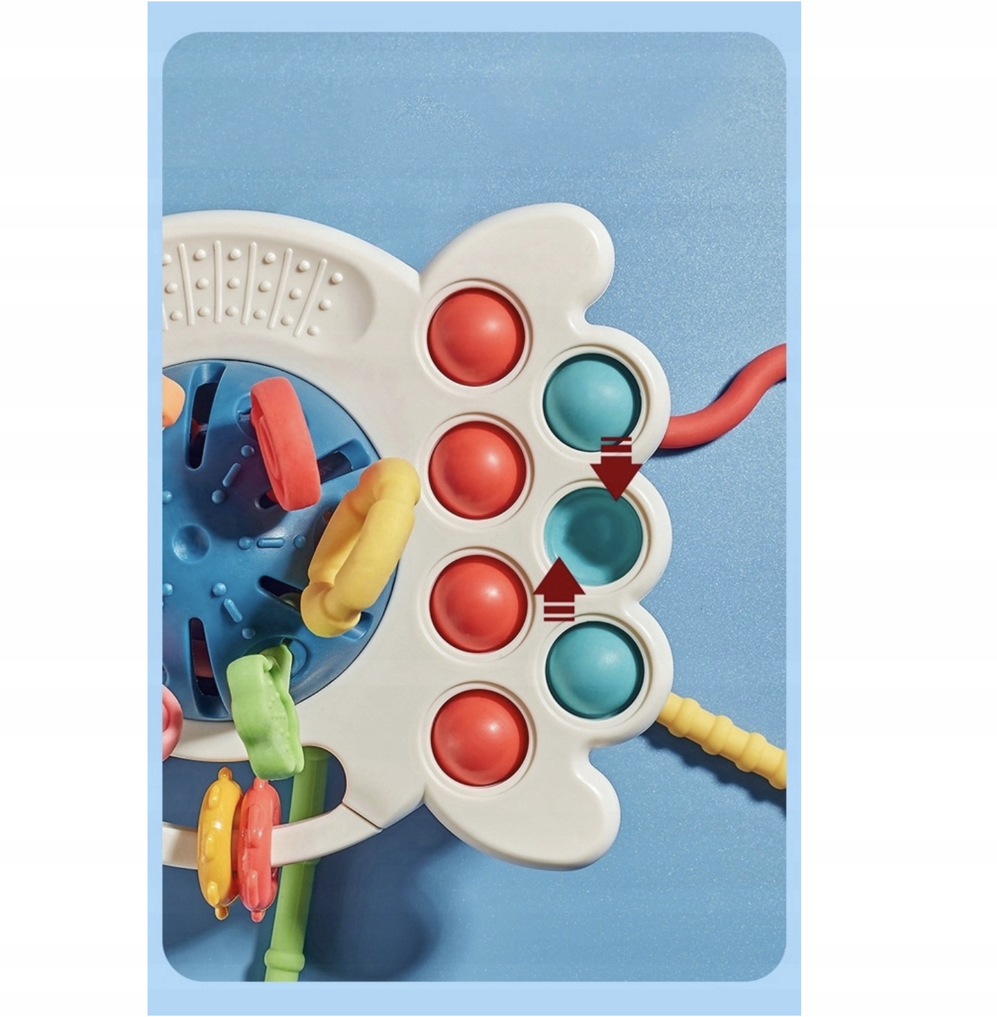 Она может выполнять функции прорезывателя и инструменты для развития маленьких рук. Содержит множество кнопок для нажатия, ниток с разными наконечниками и разной сложности их вытягивания, что обеспечивает долгое удовольствие. >
