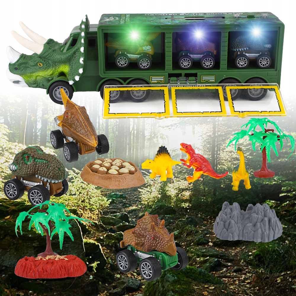 ZABAWKI DINOZAURÓW DLA DZIECI, CIĘŻARÓWKA TRANSPORTOWA Z DŹWIĘKIEM, PREZENT