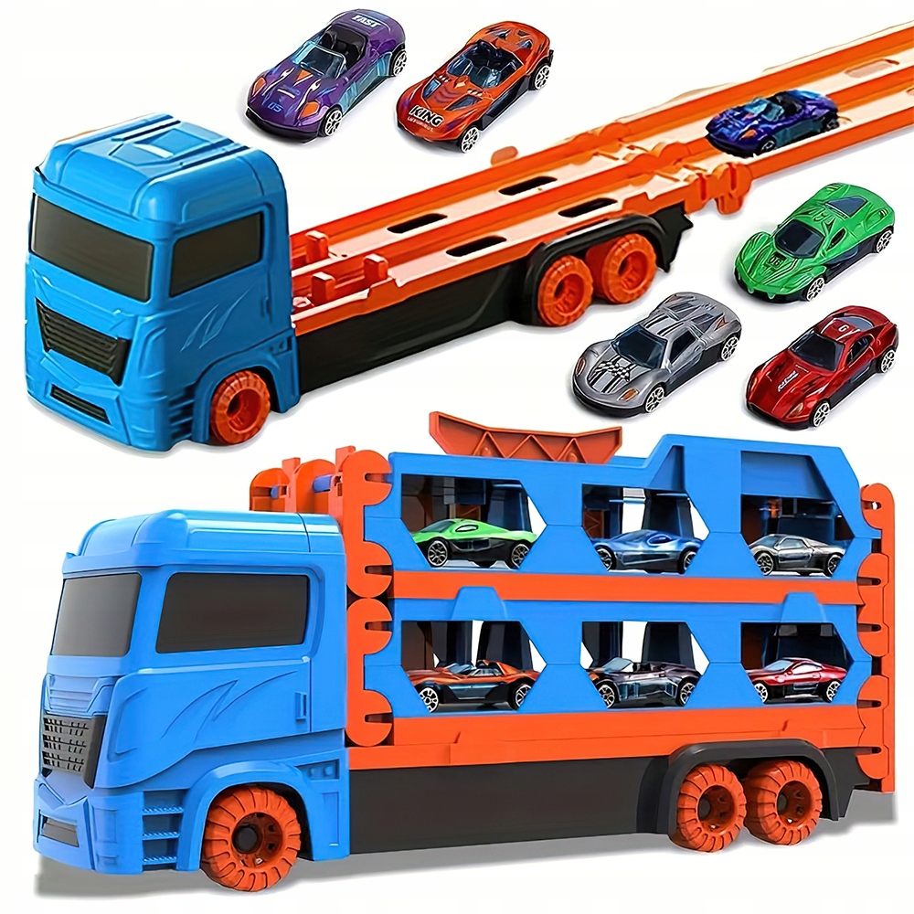 ZABAWKOWE SAMOCHODY, CIĘŻARÓWKA Z 6 SAMOCHODAMI Z NACIĄGIEM, ZESTAW PREZENT