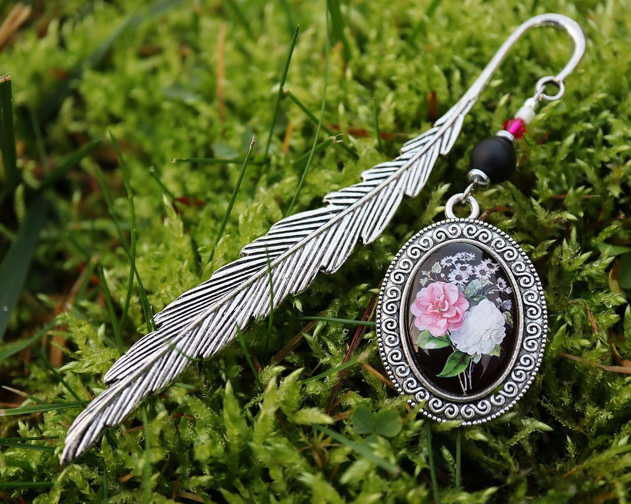 Закладка, календарь, блокнот с красивым букетом цветов, черным ониксом и двухконусным кристаллом.