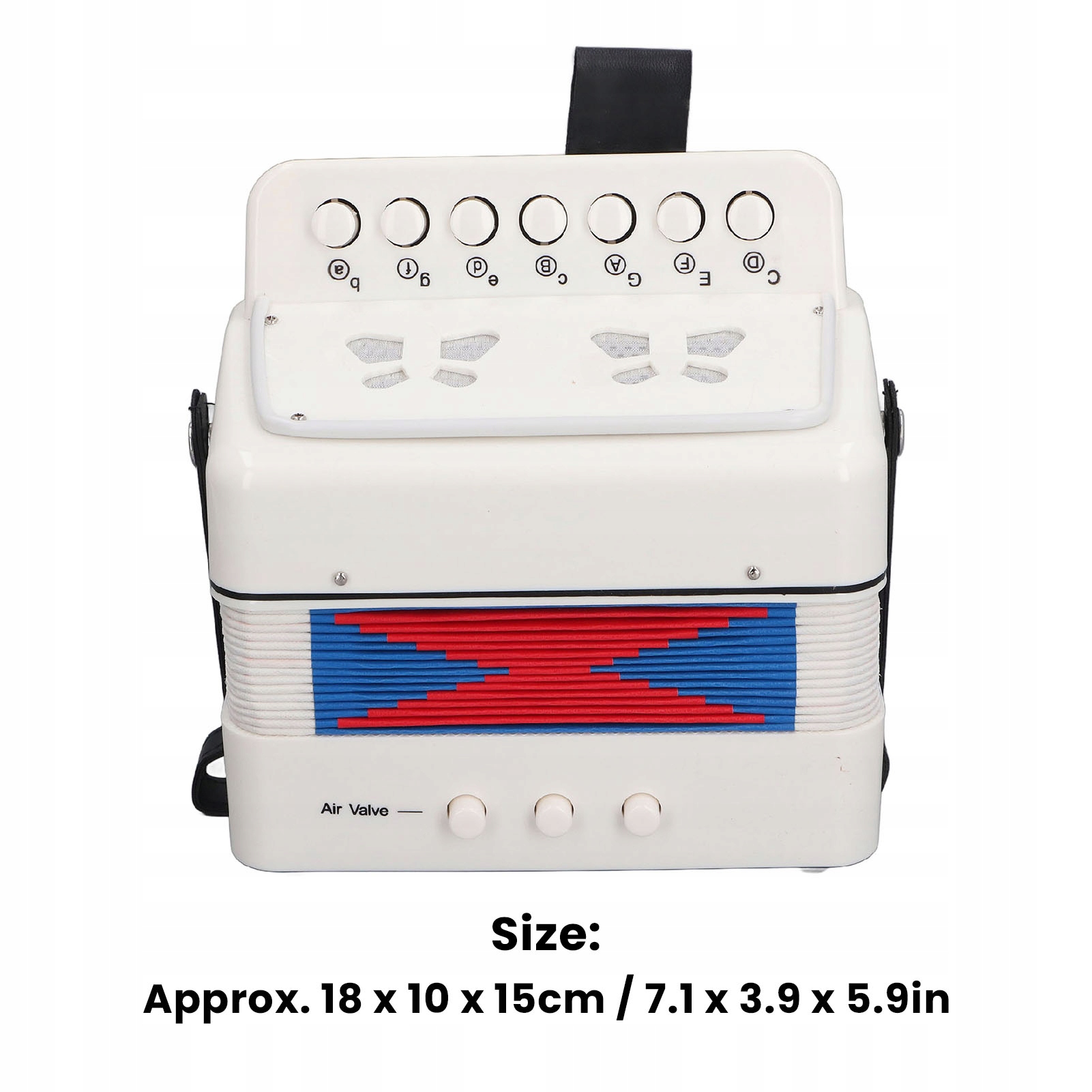 2. Идеальный детальный дизайн: идеальные колонты солидны, приглашение изготавливается из безопасных материалов. 7 кнопок могут удовлетворить потребности общей музыки. Рассчитайте пряжку ремня, когда вы хотите использовать, и закрыть, когда она не используется. Когда вы играете в этом аккордеоне, прекрасный концерт исходит от открытия звука красивого концерта
