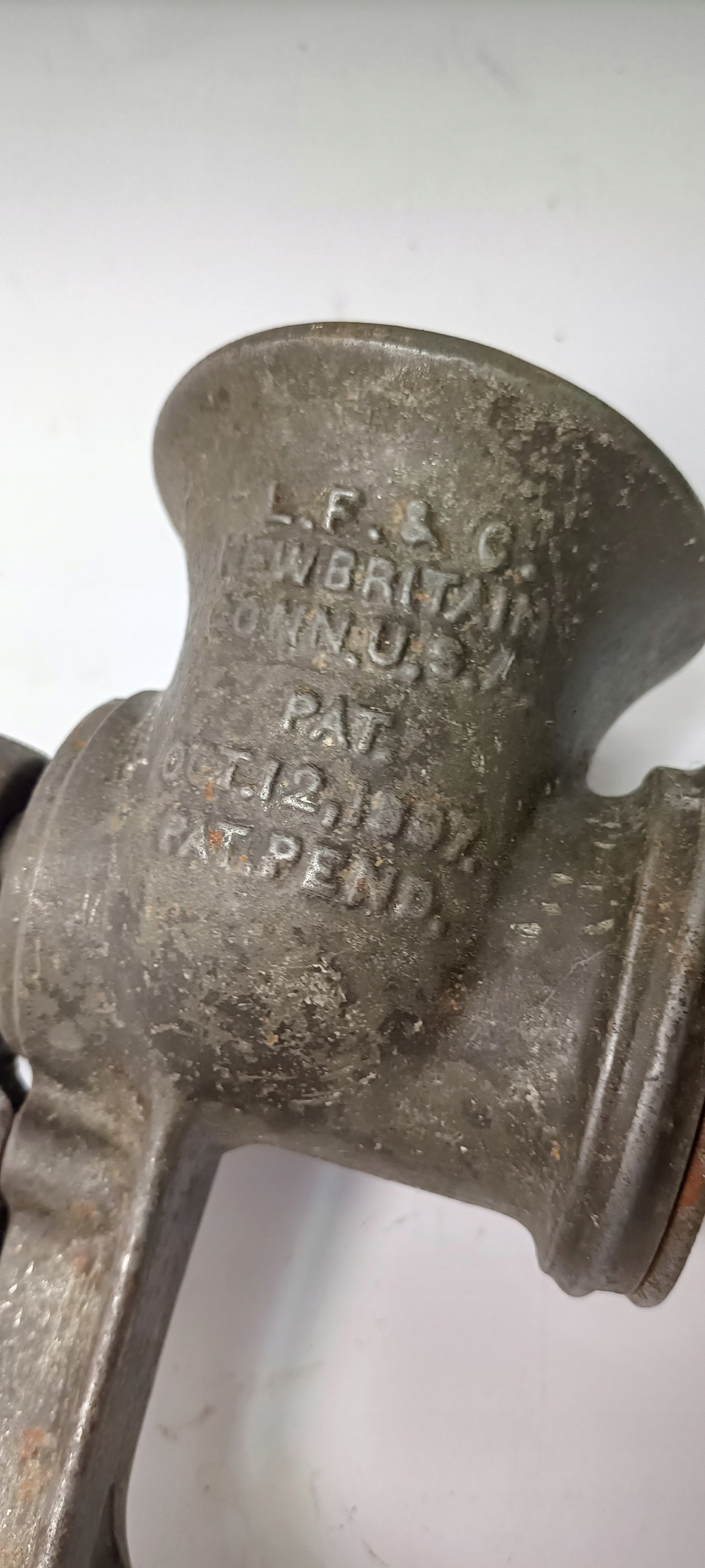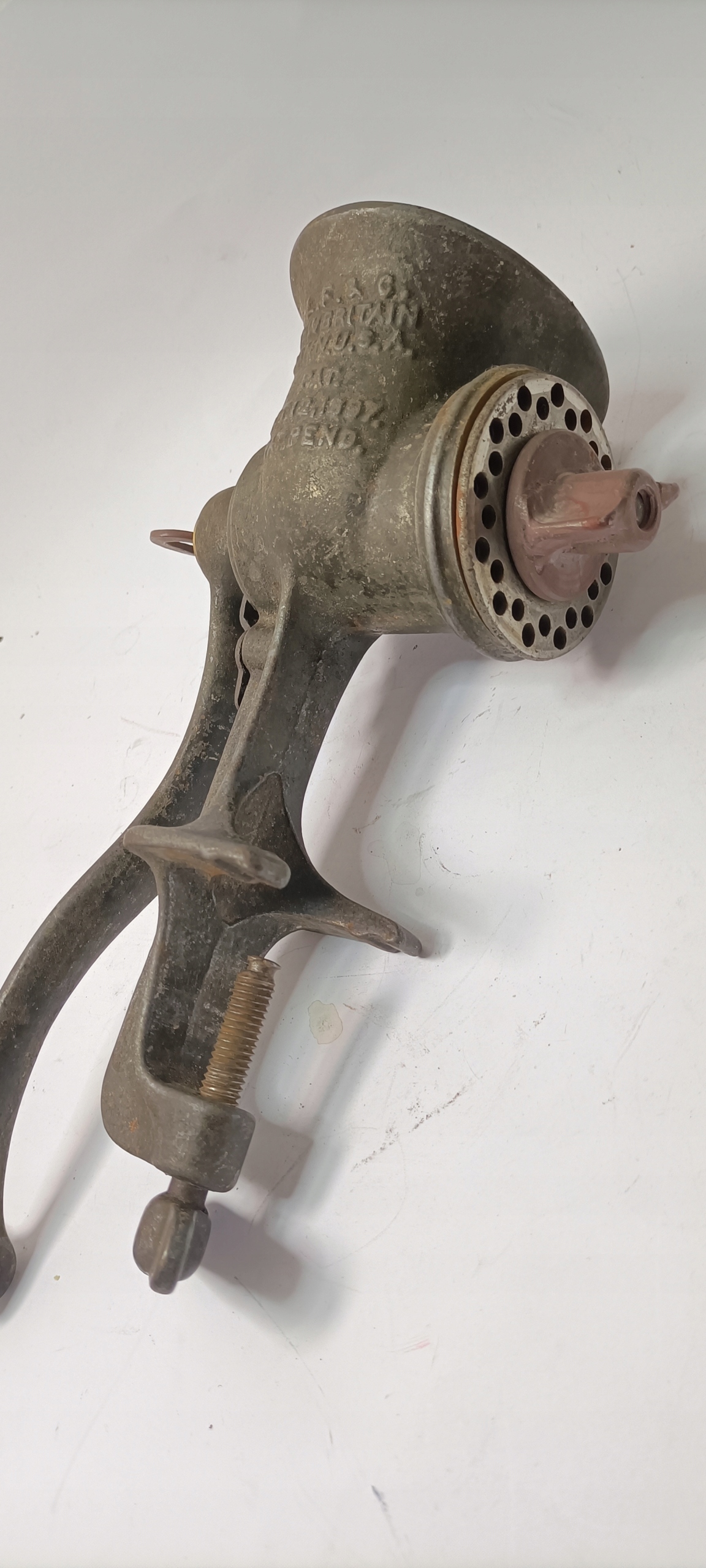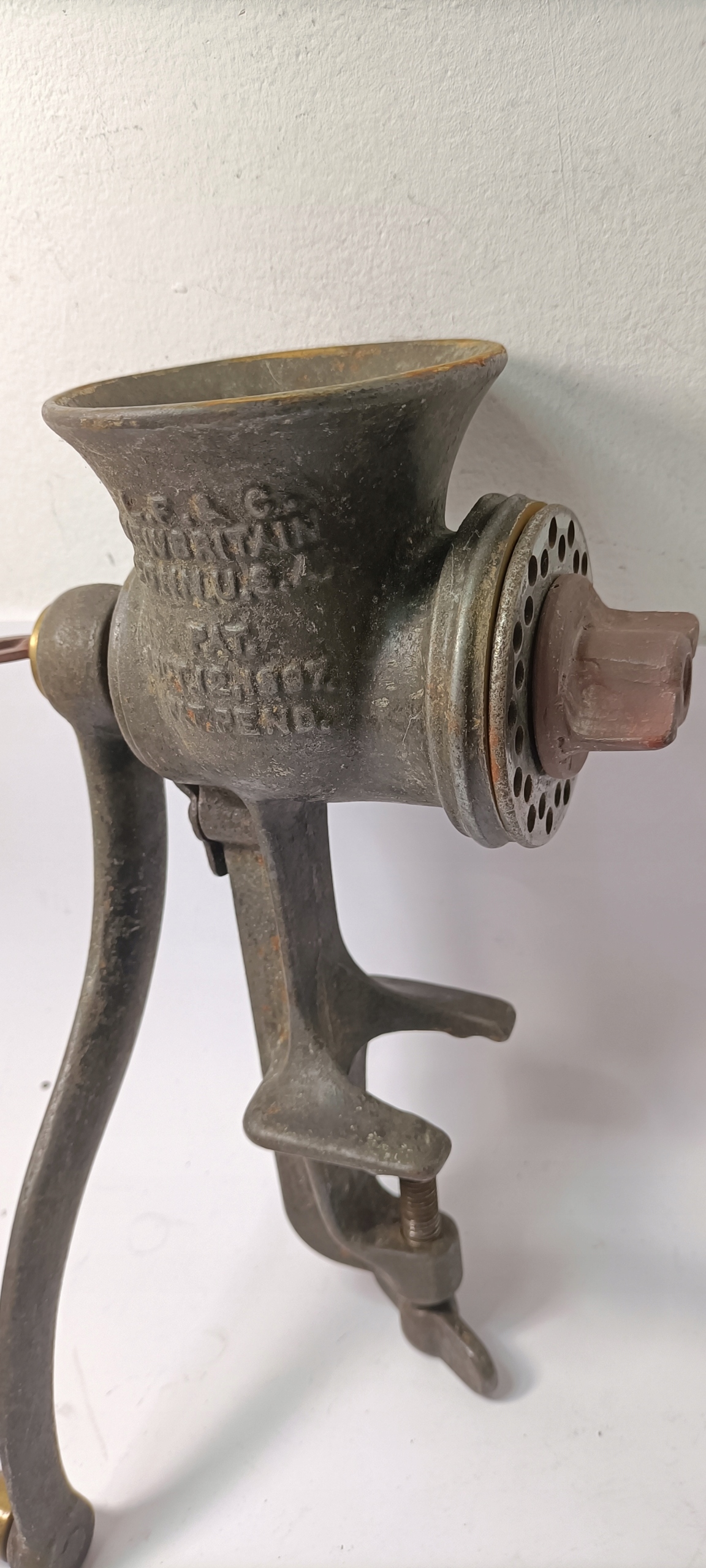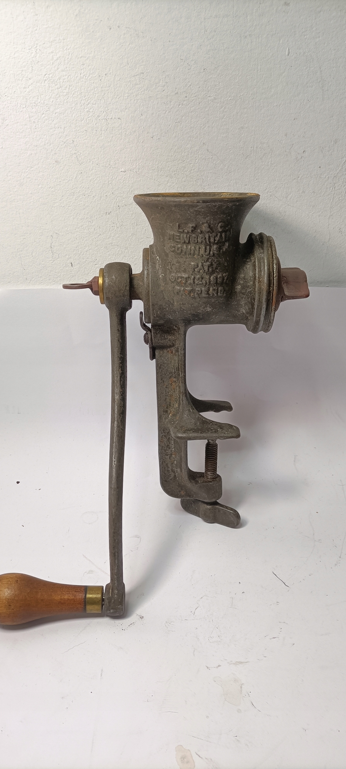 Старинная мясорубка британской марки Climax, имеющая номер (№52) и запатентованная в XIX веке, в 1897 году.