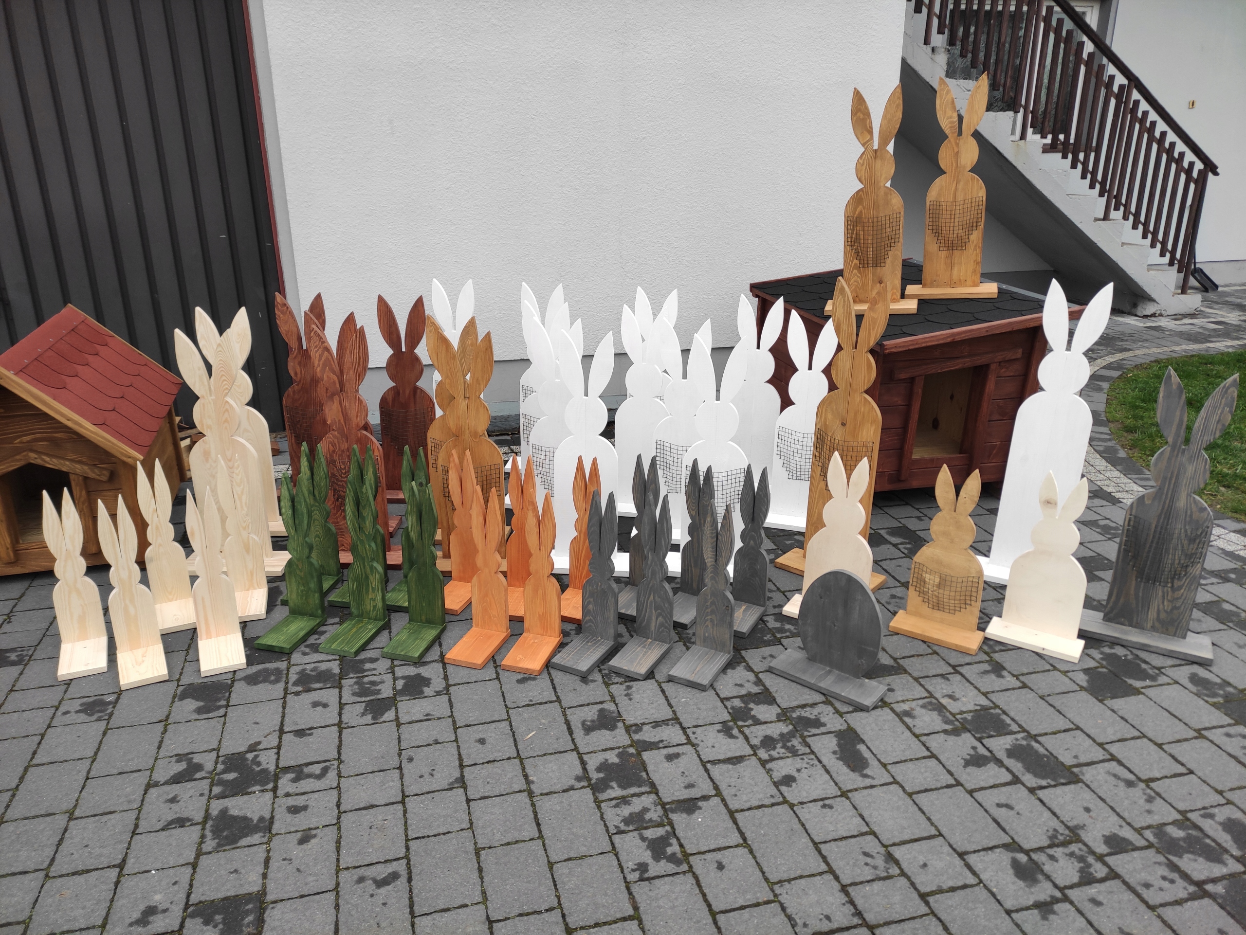 Деревянный заяц в горшке большой 79 СМ 11 ЦВЕТОВ Пасхальное украшение для дома