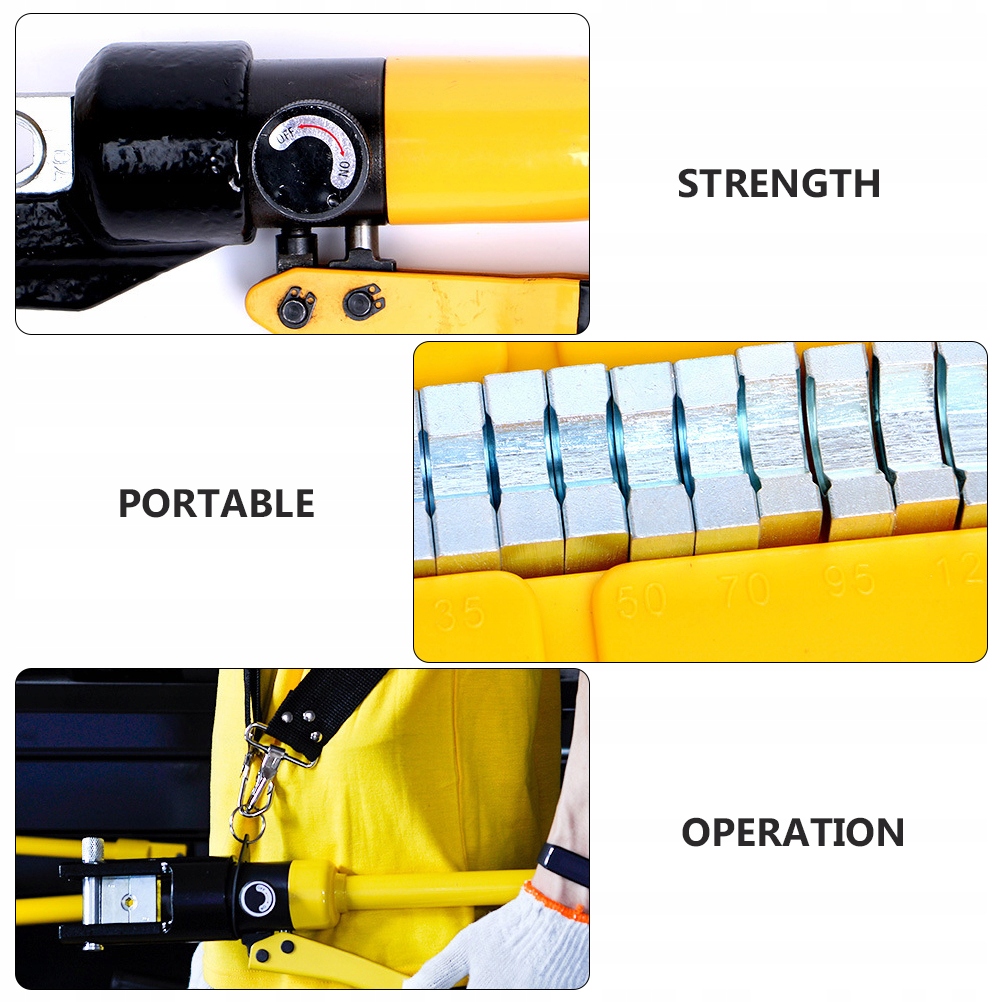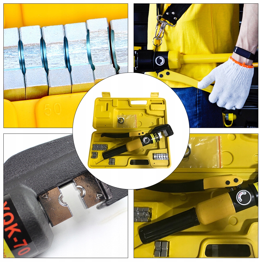 Этот продукт представляет собой набор инструментов для обжима, который используется для обжатия и соединения алюминиевых, медных проводов и кабелей в морских и архитектурных применениях. Идеально подходит для соединения и обжима с удерживающей силой. Инструмент безопасен и не рвет кабели и провода при обжимке.