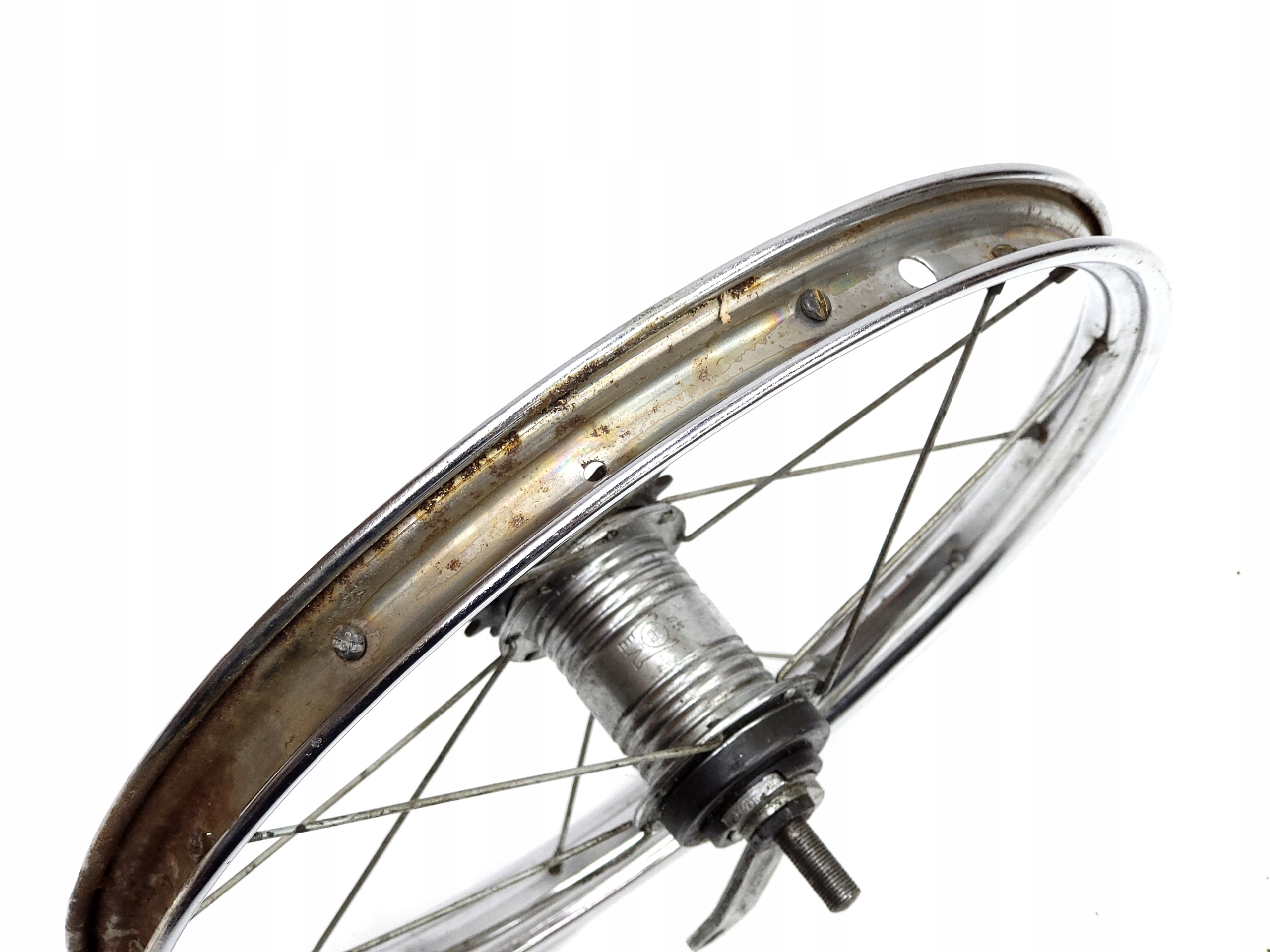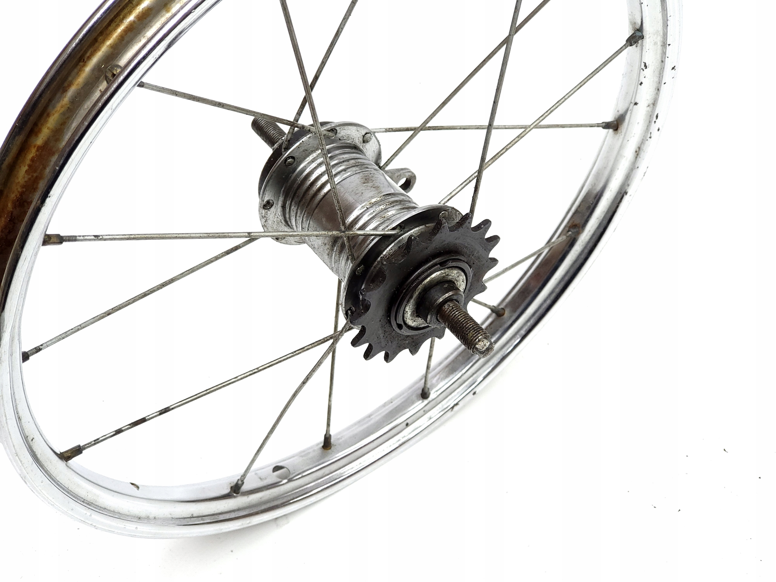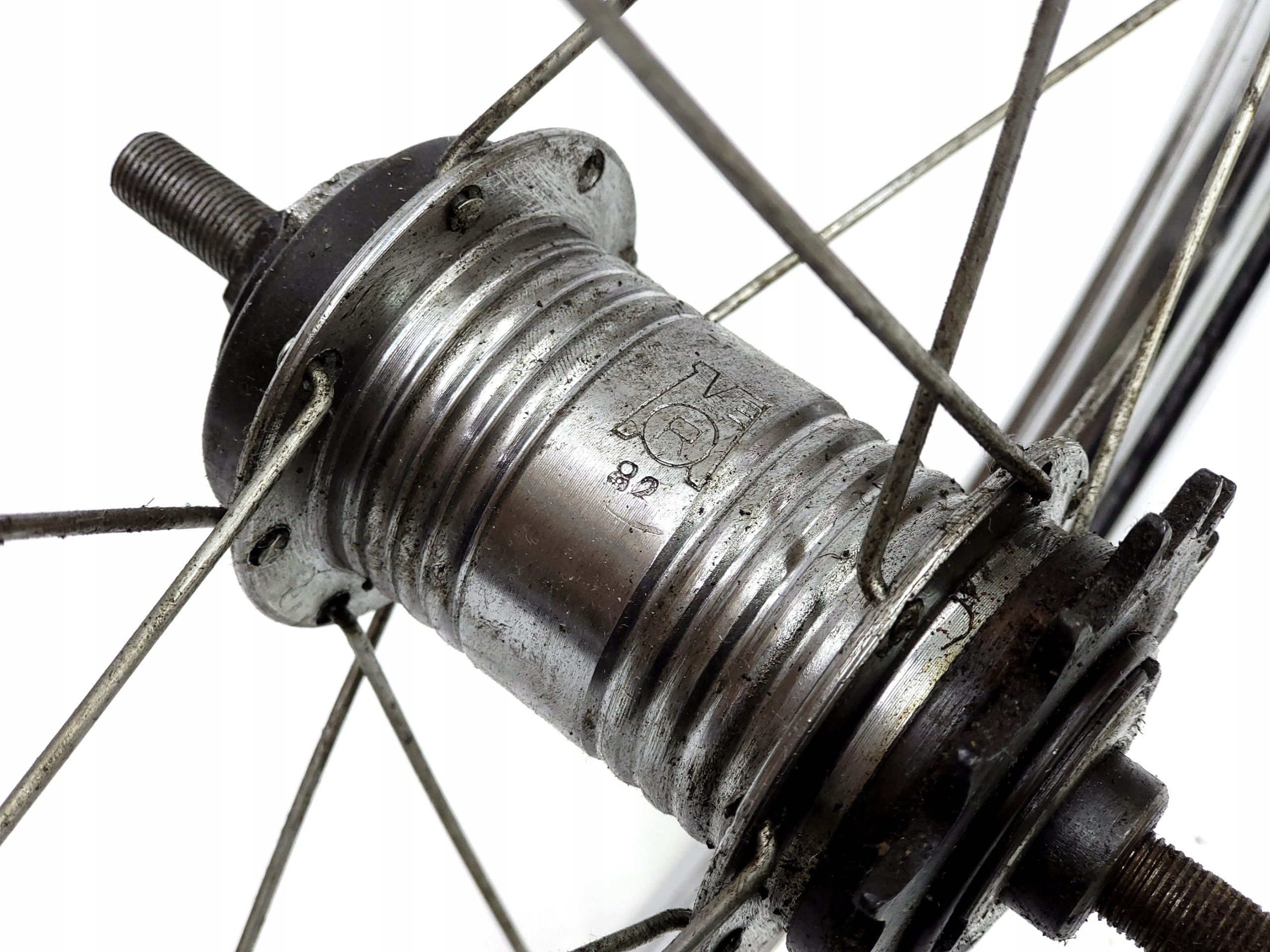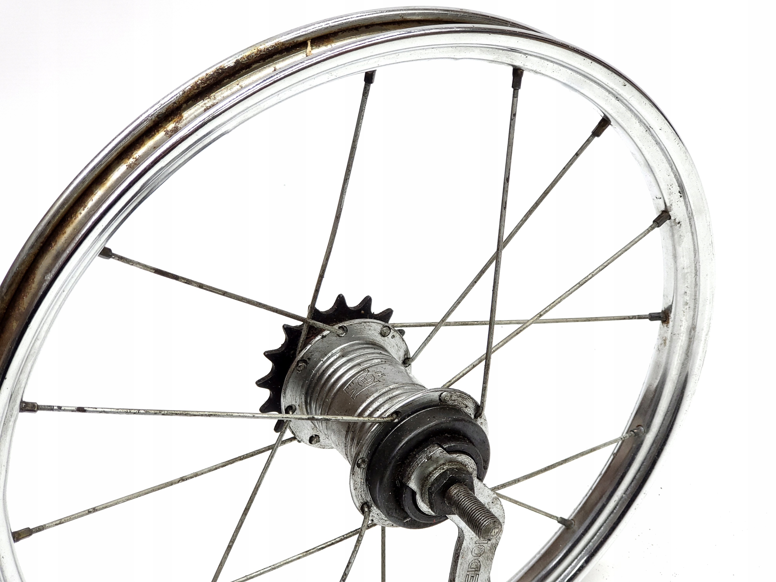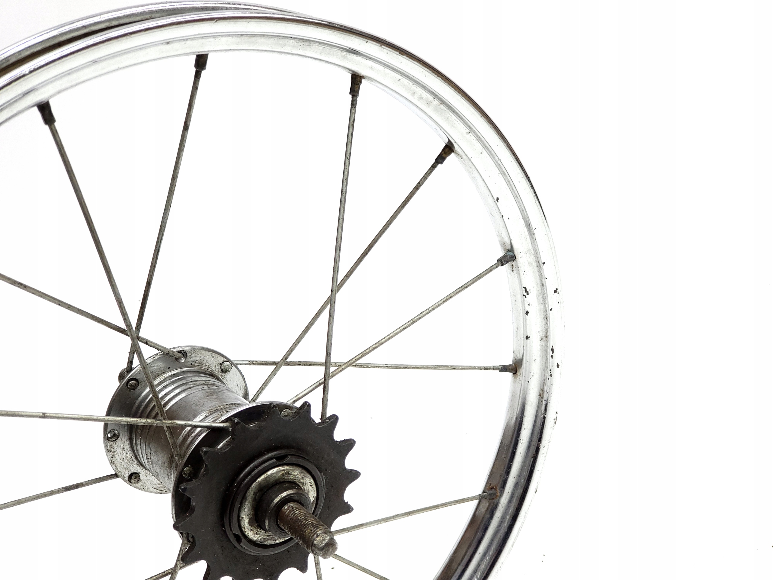 мы предлагаем 16 -килограммовое заднее колесо (внешний диаметр обода: 31,5 см) для Universal Tyler Romet Bicycles 1982. Обод с деликатной коррозией, простой, отсутствие одного выступающего, торпедного механизма, эффективного, минимальное просмотр, колесо, вероятно, не используется.