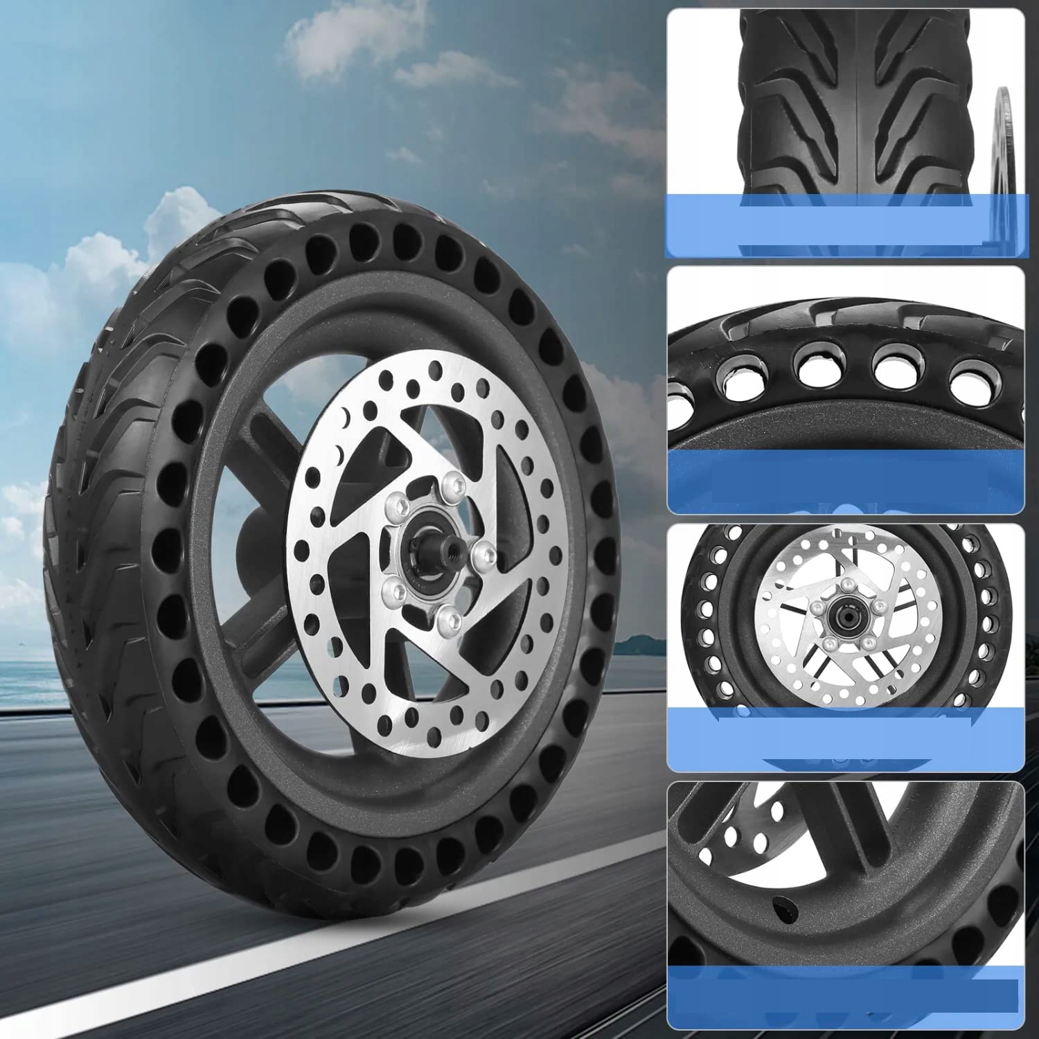 ЗАДНЕЕ КОЛЕСО СКУТЕРА В СБОРЕ, СТУПИЦА КОЛЕСА 8,5 ДЮЙМОВ С ЦЕЛЬНОЙ ШИНОЙ 110 ММ