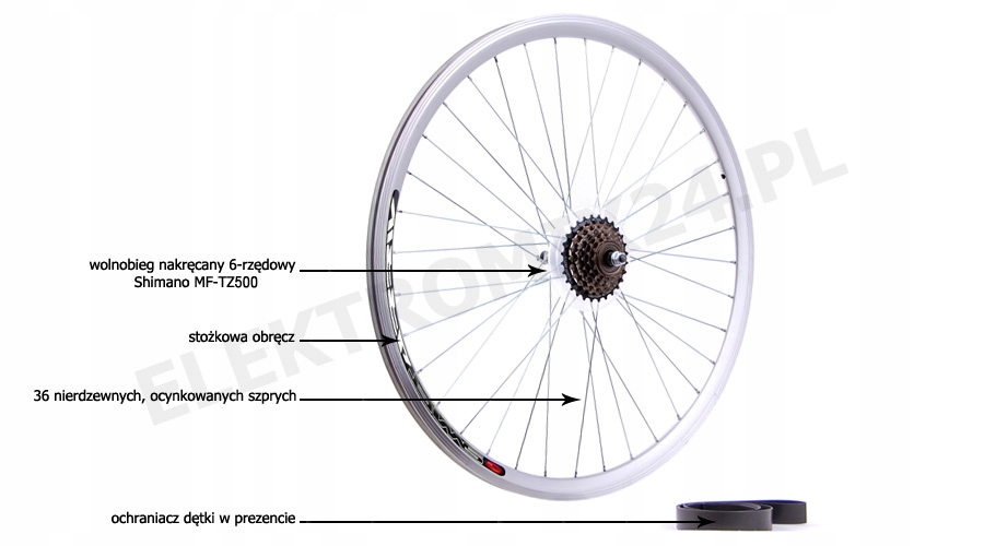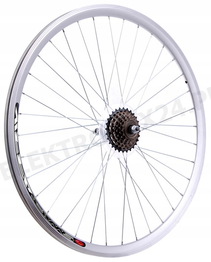 Усиленное заднее колесо 26 дюймов с оригинальной муфтой свободного хода Shimano. Конический обод из алюминия, имеет 36 спиц серебристого цвета.Ступица на шарикоподшипниках от известной, прославленной компании JoyTech.В комплект также входит навинчивающаяся 6-скоростная муфта свободного хода Shimano MF-TZ500 из стали повышенной прочности.
