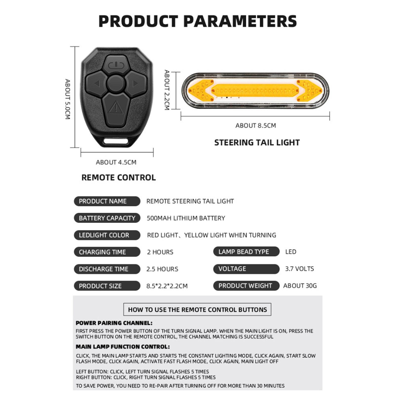 Стильный и оригинальный дизайн заднего фонаря, хорошие варианты - горный велосипед, шоссейный велосипед, пригородный велосипед и т. д. Легкое включение сигнала, аварийная сигнализация и переключение режимов освещения с помощью пульта дистанционного управления обеспечивают большую безопасность ночью или в дождливый день.