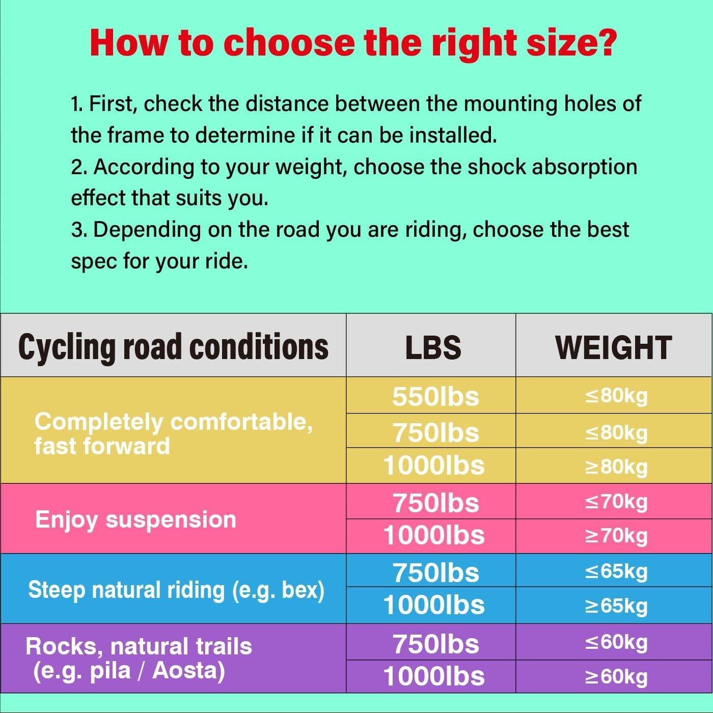 - Производительность: задний амортизатор велосипеда, амортизация контролируется системой нажимных пружин, амортизация мягкая, более стабильная, срок службы длительный; Он имеет тот же амортизирующий эффект, что и амортизация давления, и относительно недорог.