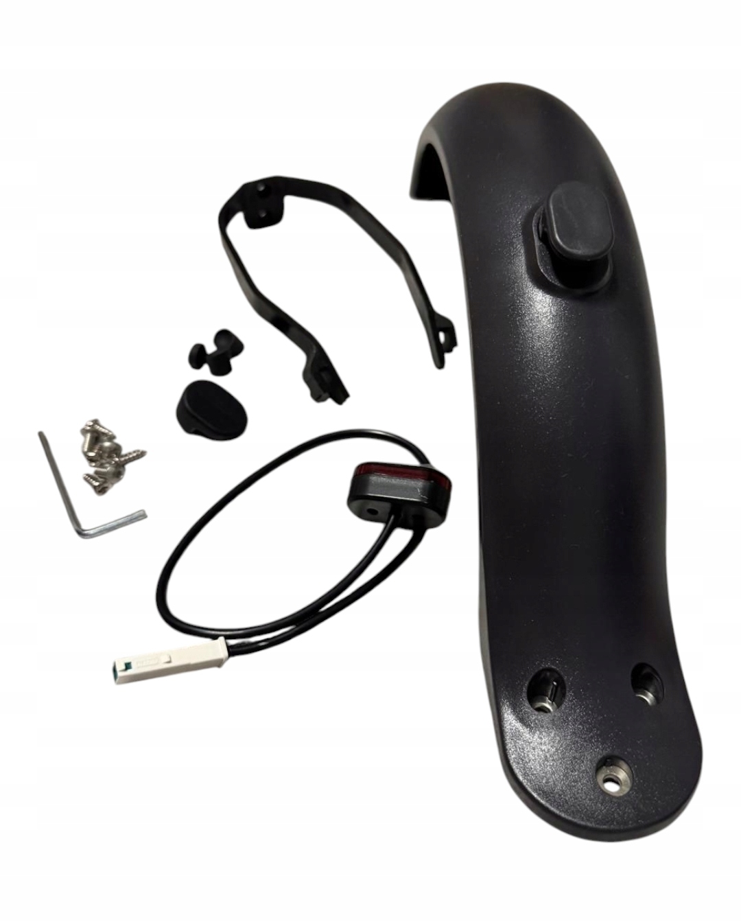 Полный комплект для сборки ЗАДНЕГО крыла, версия с крюком (защелкой), включая светодиодный стоп-сигнал, кронштейн брызговика и элементы крепления - винты и заглушки
