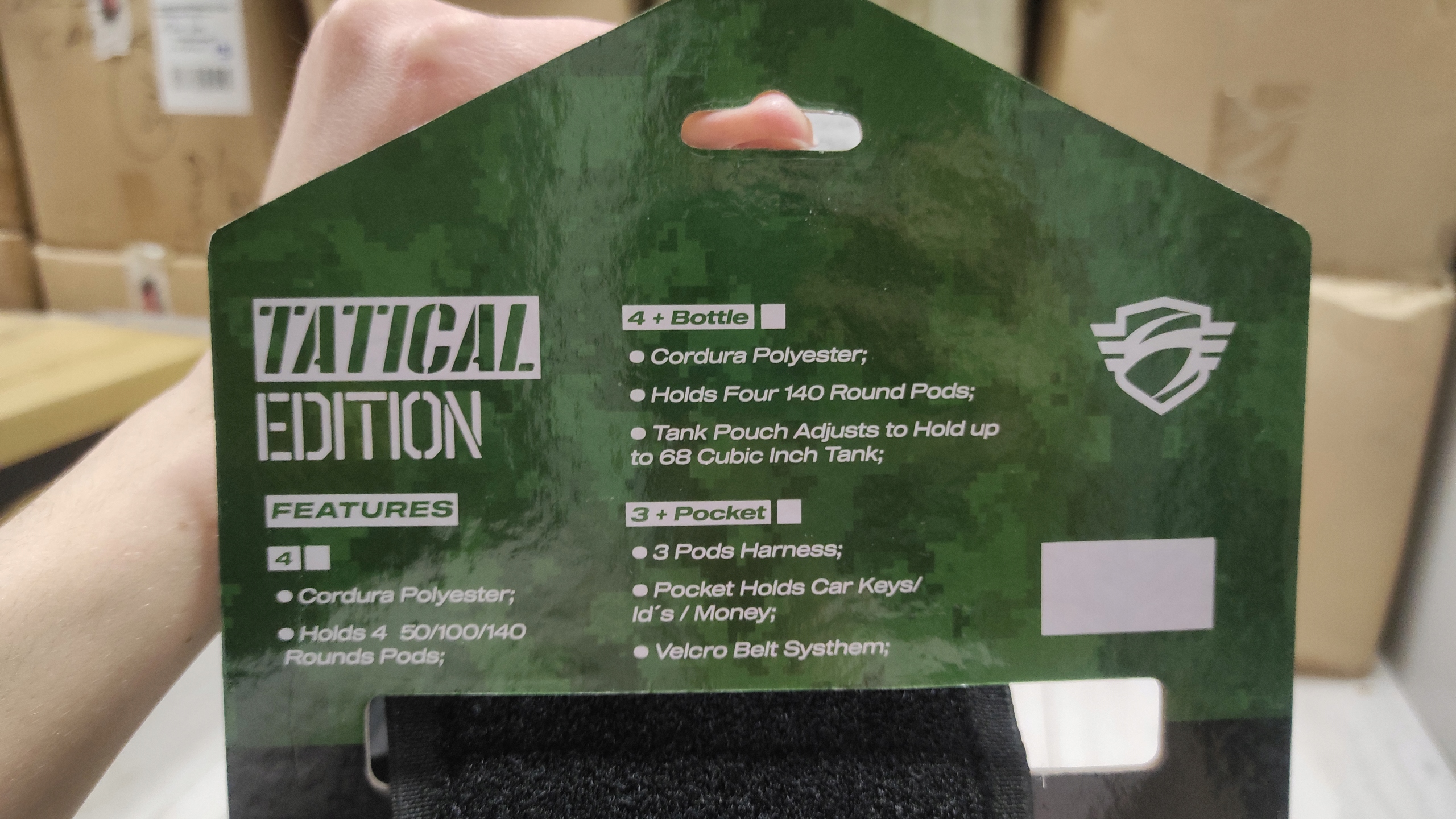 - 4 кармана для дополнительных капсул/толстяков с вместимость 100 или 140 шариков,