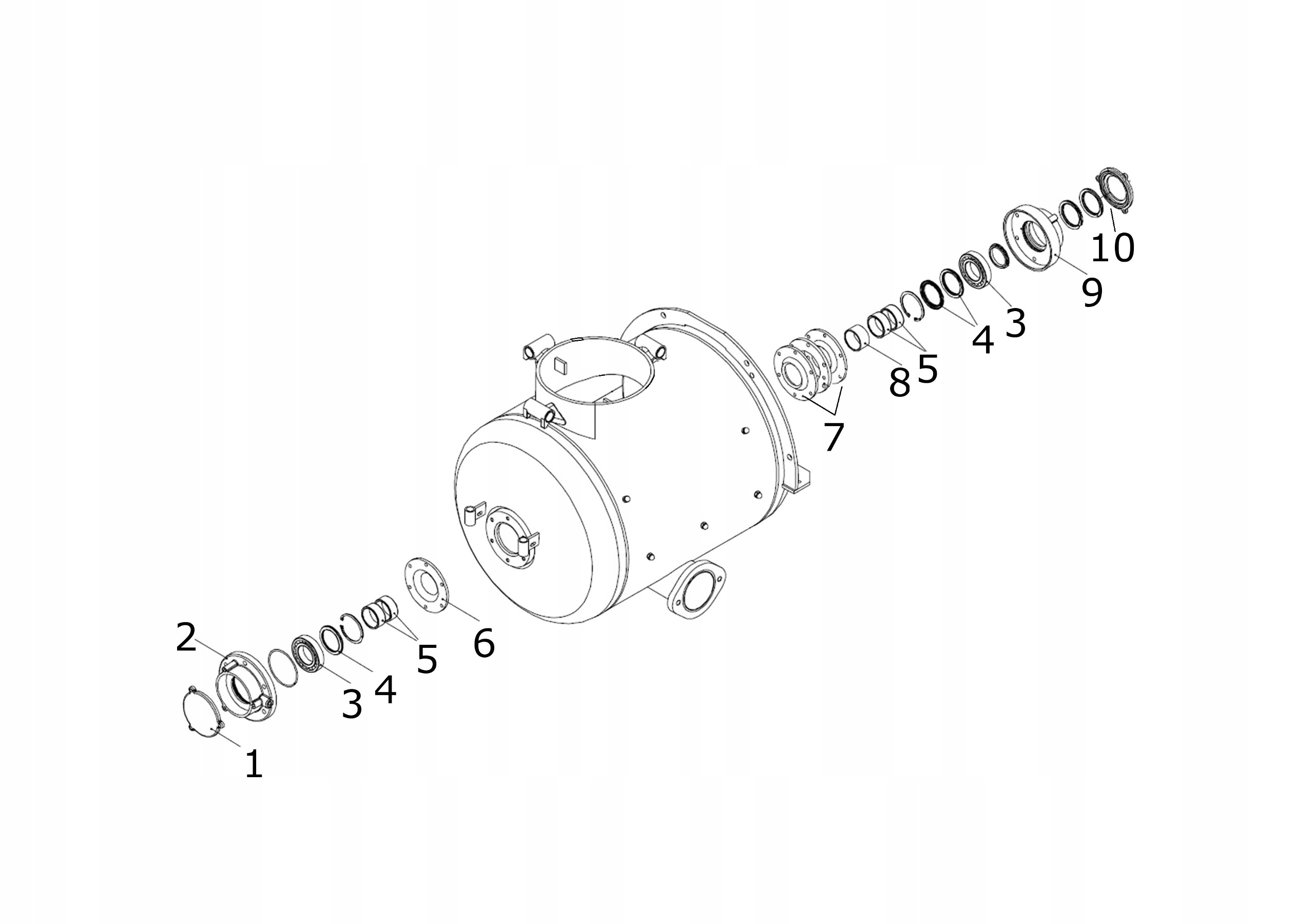 Предмет аукциона — крышка/крышка (на схеме обозначена №1) корпуса заднего подшипника вала смесителя бетоносмесителей Putzmeister M743 и Brinkmann DC450.