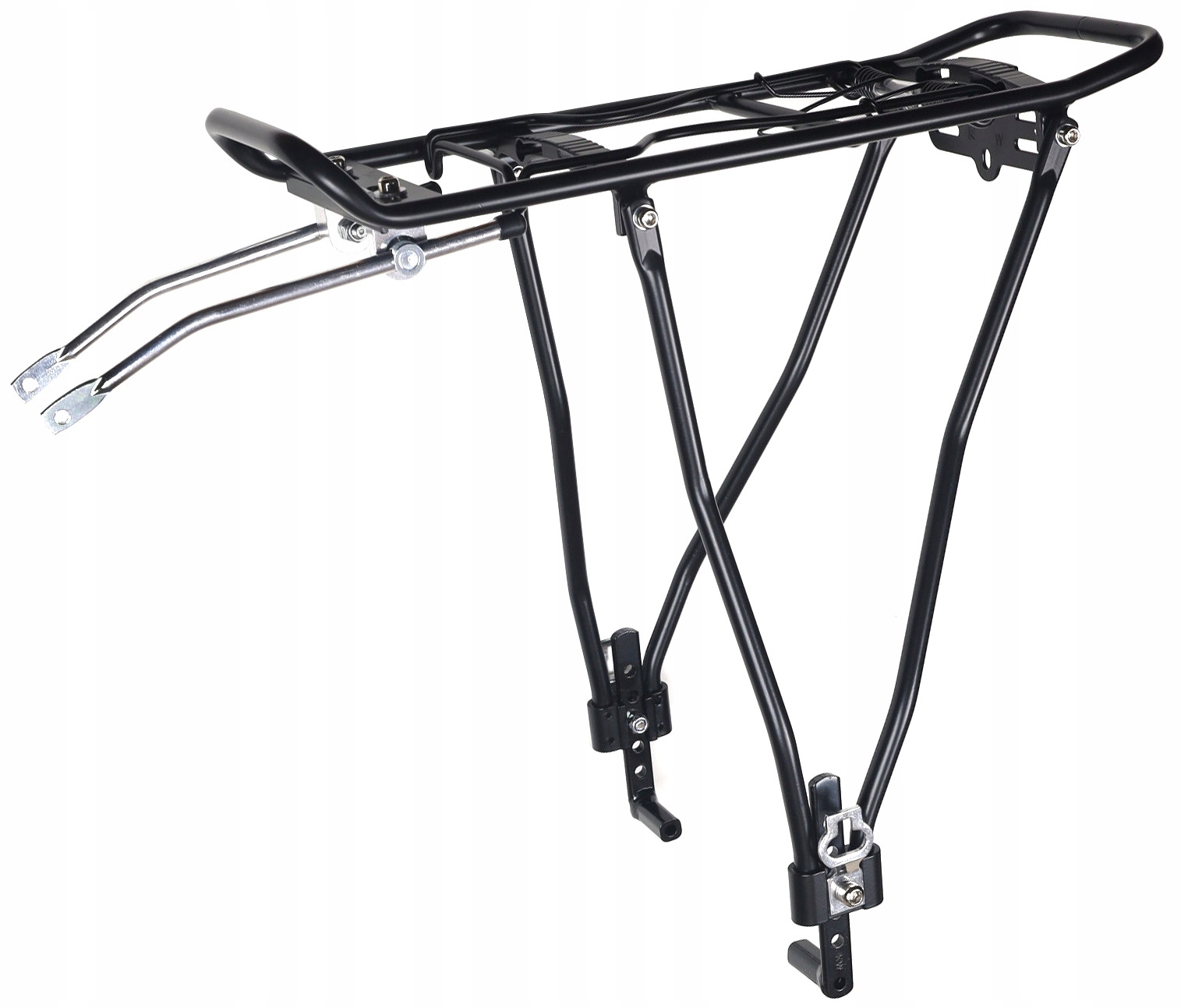 - Стабильная установка на задние вилки различных типов благодаря входящему в комплект переднему креплению