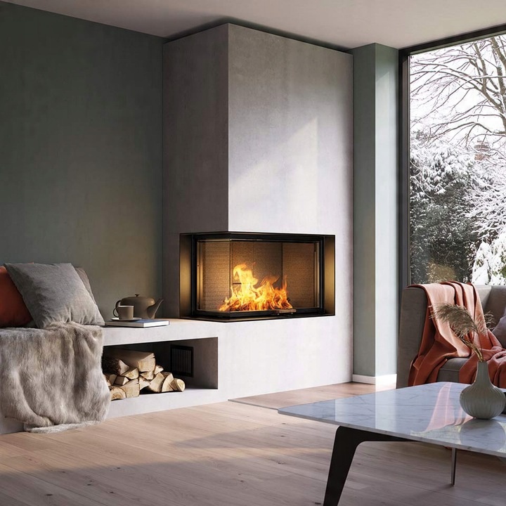 Двухстороннее полированное стекло из неокерамики гарантирует чистый обзор огня в помещении. камина, стекло обеспечивает четкое и полное изображение огня во время его горения.