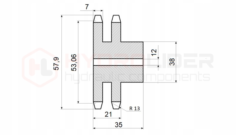 Загартована подвійна зірочка 2x13 зубів 1/2" для ланцюга 08B-2