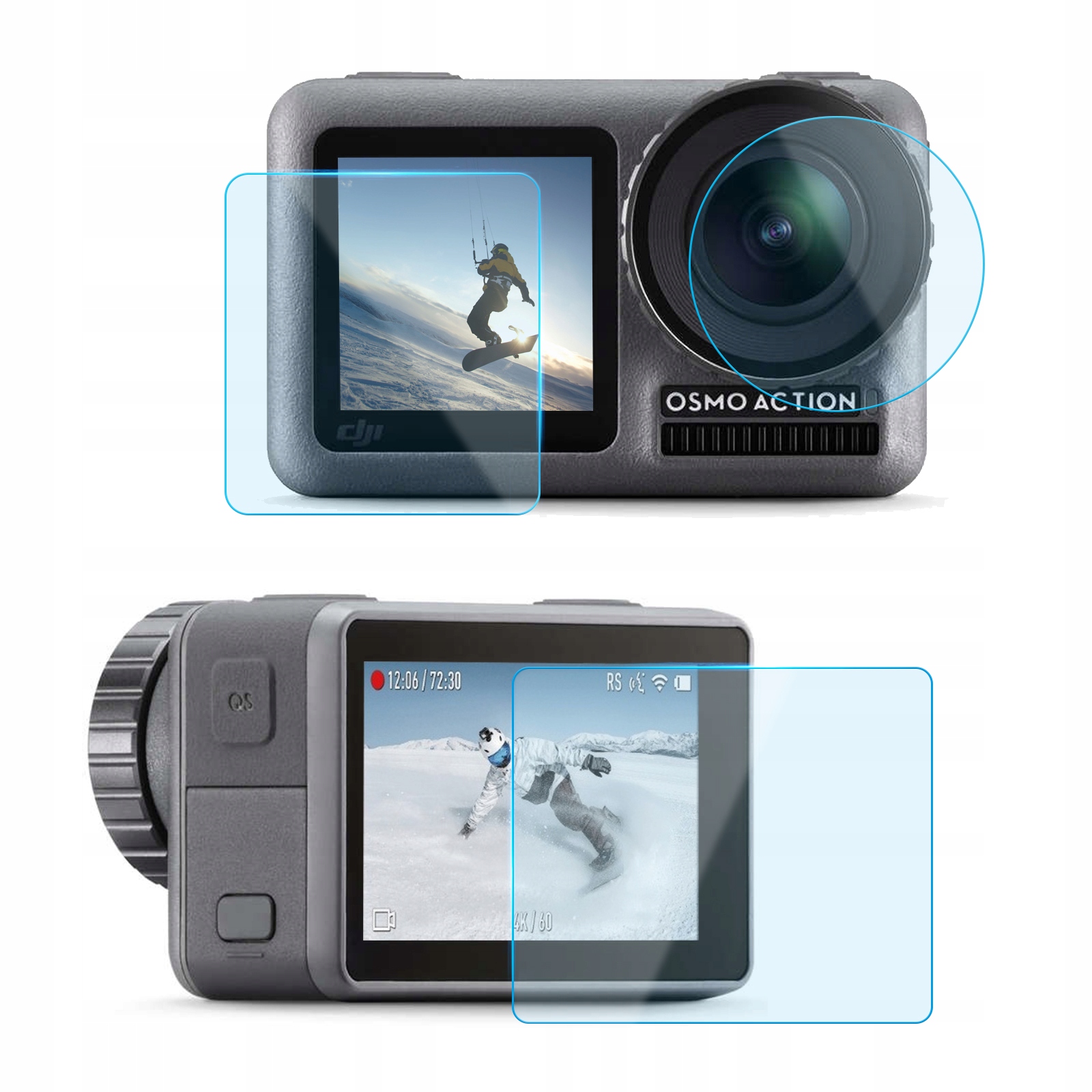 Крышки экрана и объектива спортивной камеры DJI изготовлены из высококачественного закаленного стекла твердостью 9H.