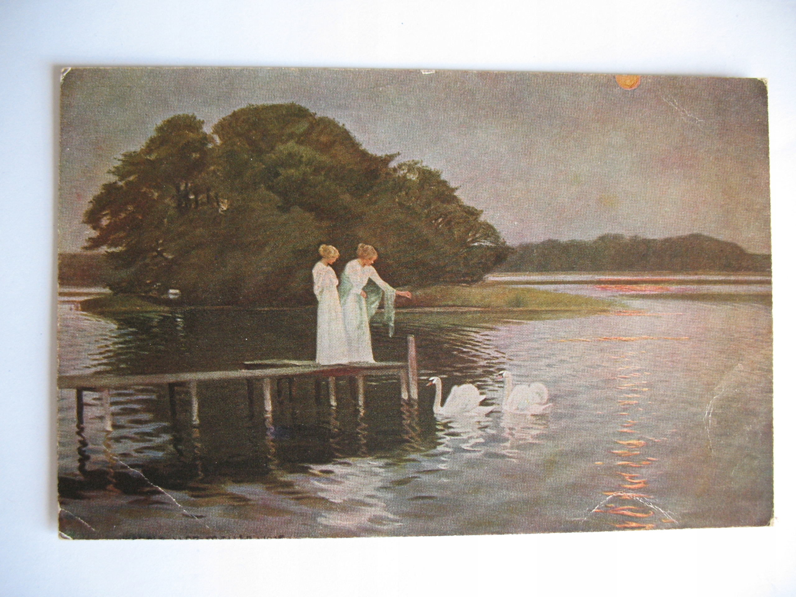 ZAGINIONY ŚWIAT ŁABĘDZIE WIECZORNE ODWIEDZINY przedwojenna POCZTÓWKA