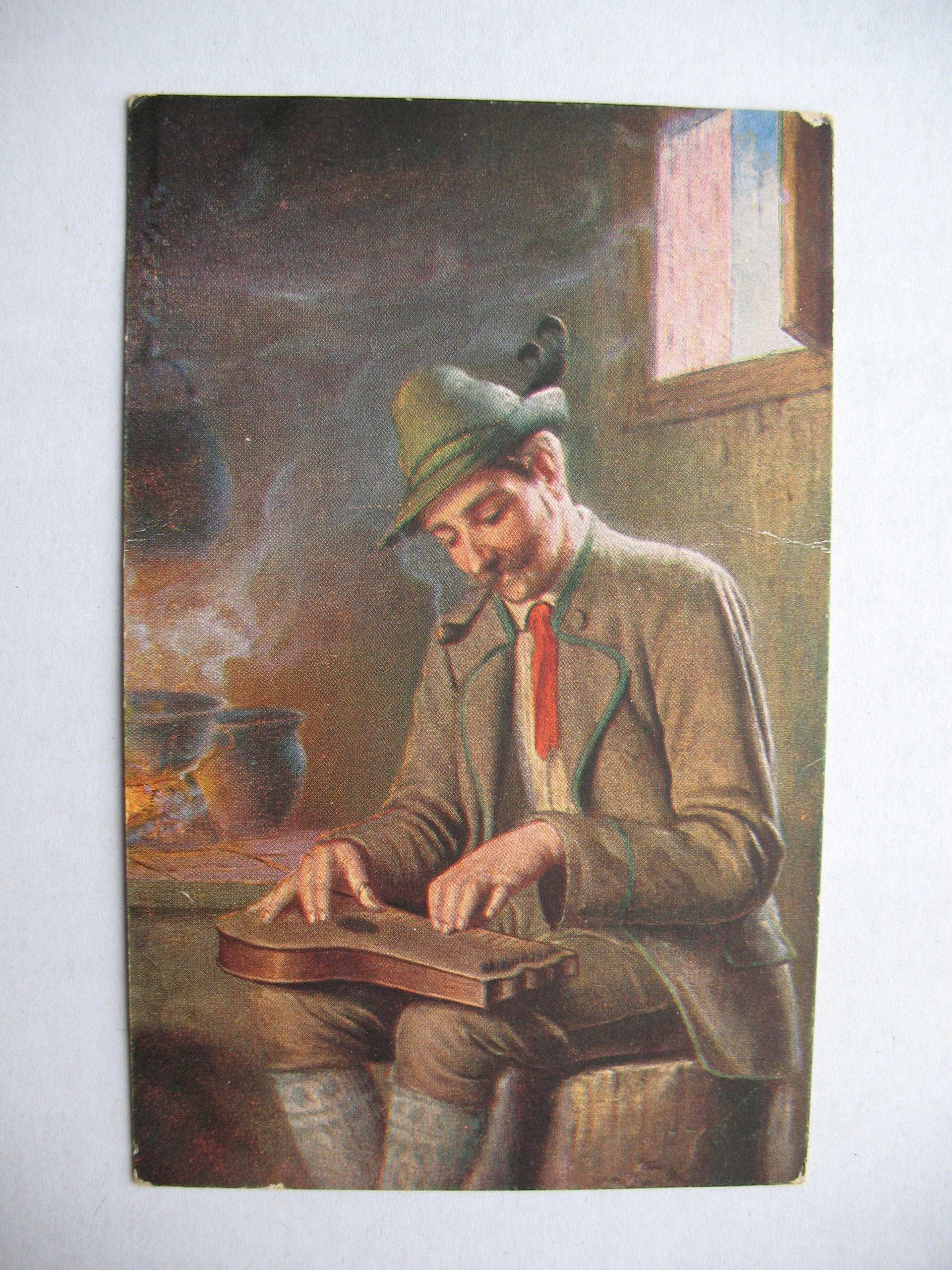 ZAGINIONY ŚWIAT PRZY PIECU CYTRA GRAJEK FAJKA przedwojenna POCZTÓWKA