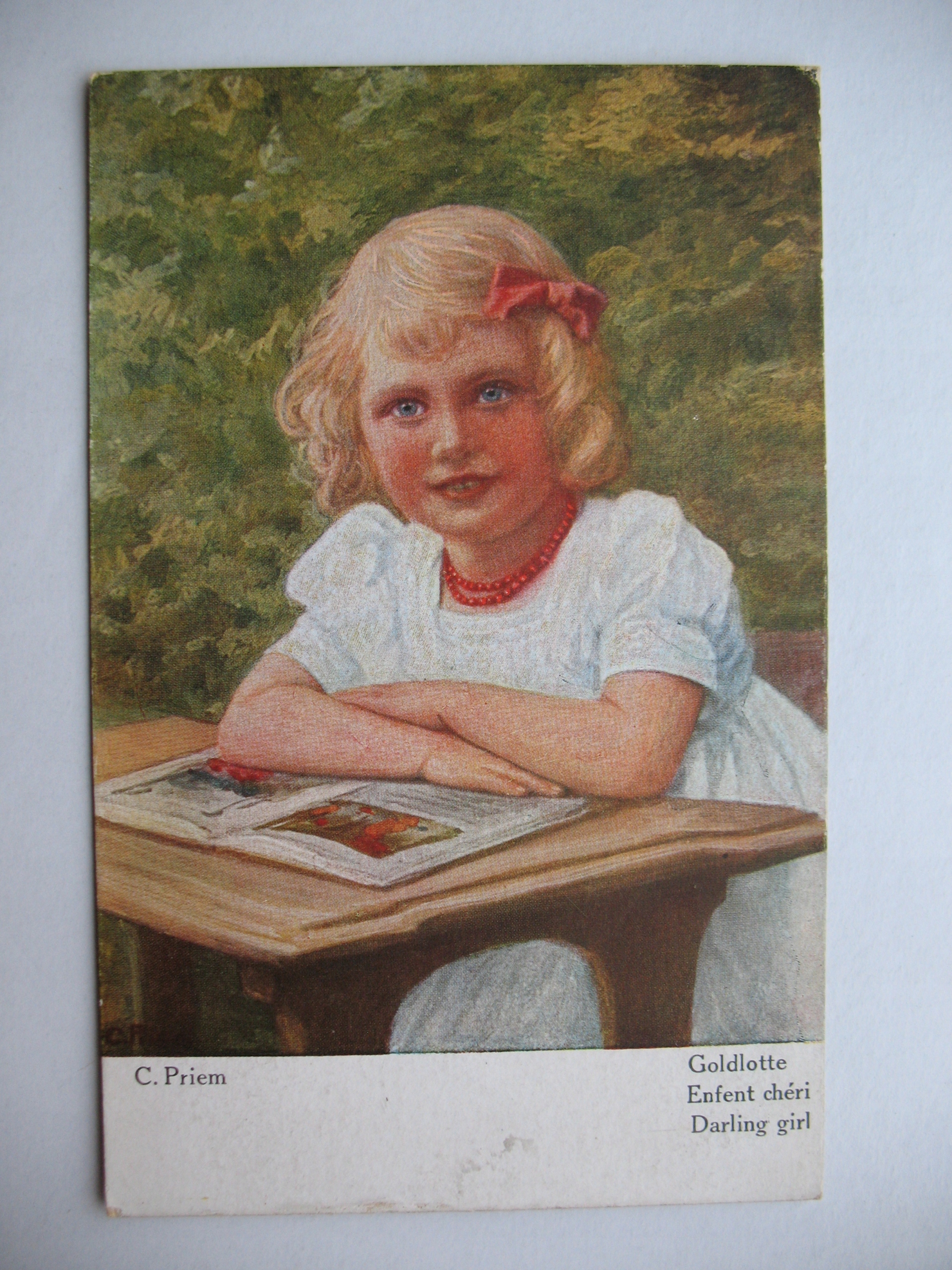 ZAGINIONY ŚWIAT ZŁOTA DZIEWCZYNKA Z KSIĄŻKĄ przedwojenna POCZTÓWKA
