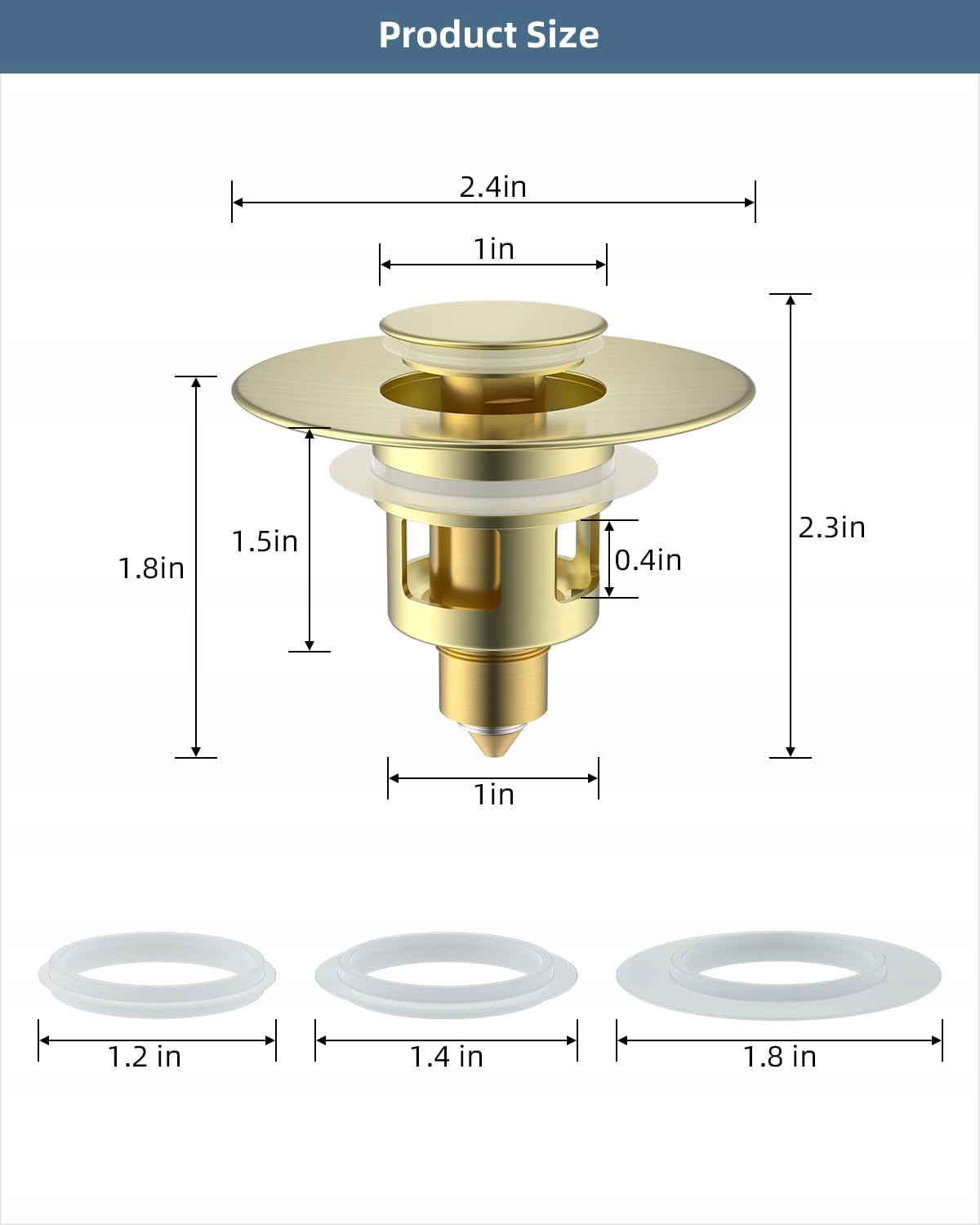 - [всплывающее фильтр дренаж для раковины прост в установке] Сливная крышка для всплывающей раковины имеет простую конструкцию и не требует никаких инструментов, просто удалите старую и надевайте. Если вы хотите использовать его для больших диаметров отверстий раковины, вы можете использовать встроенное резиновое кольцо, чтобы увеличить внутренний диаметр пробки раковины. Сила отражения хороша, быстро течет и быстро запечатывает воду.
