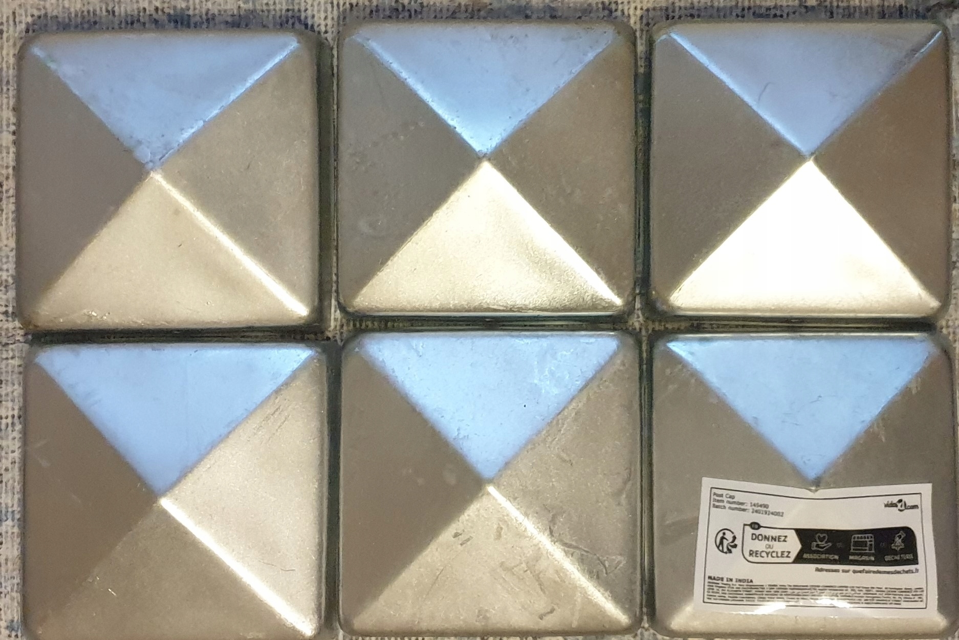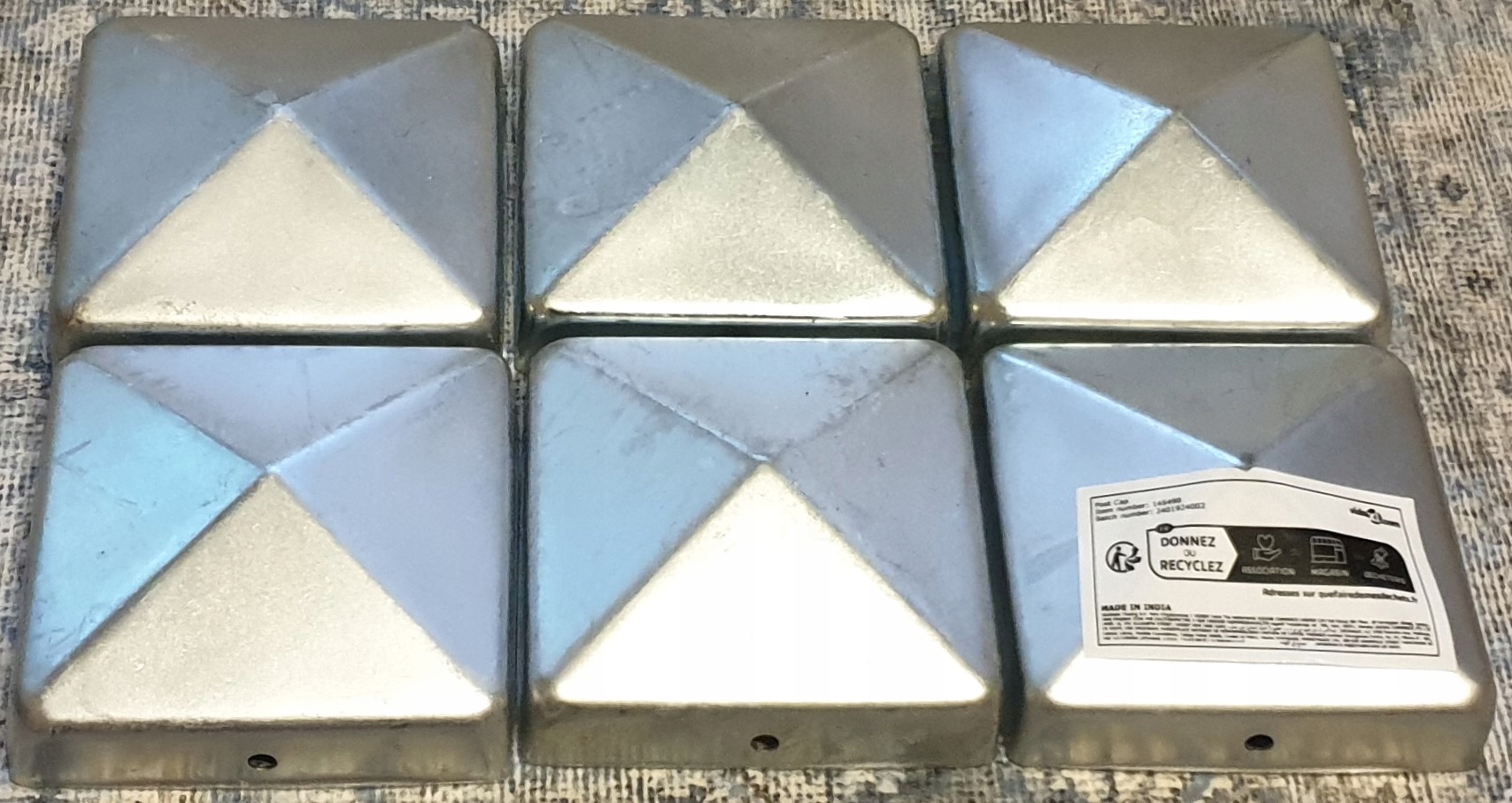Заглушки для стоек vidaXL, 6 шт, металл оцинкованный, 81х81 мм