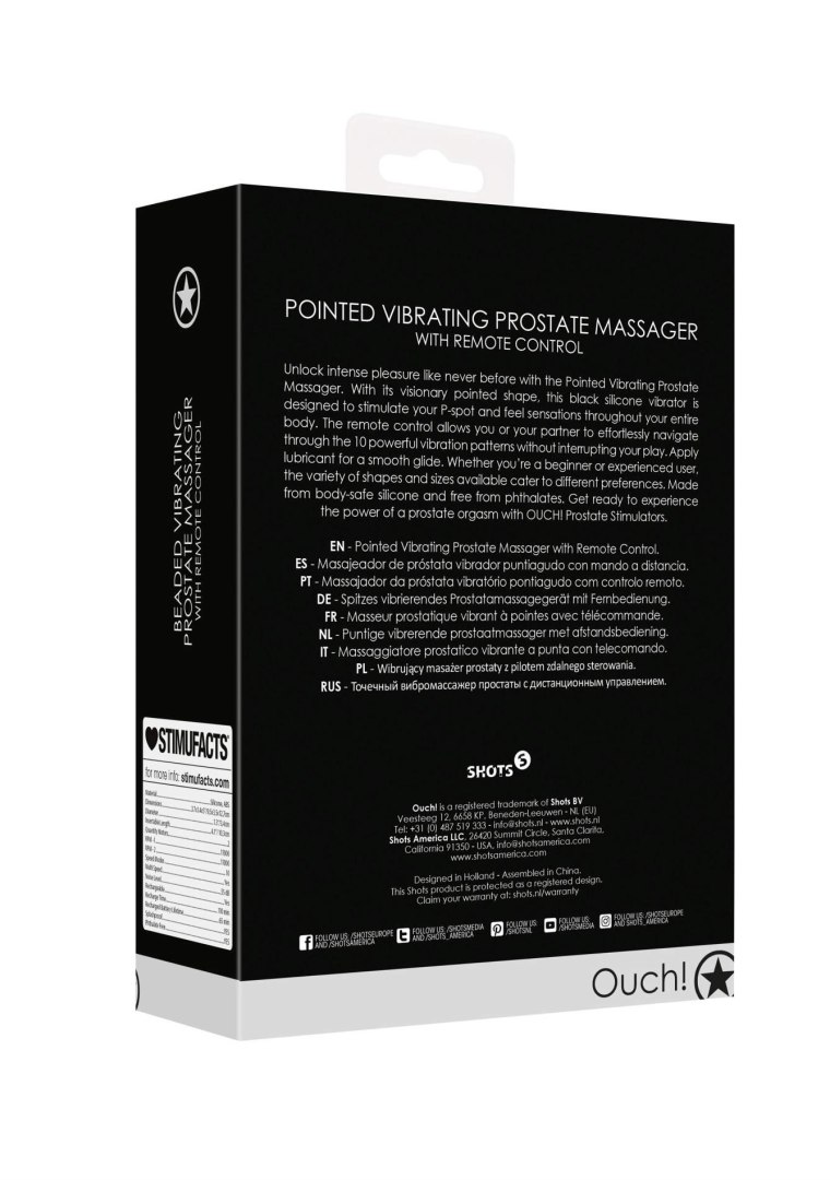 Отражайте сильное удовольствие, как никогда раньше, благодаря заостренному вибрирующему массажеру простаты. Благодаря дальновидной, заостренной форме, этот черный силиконовый вибратор был разработан, чтобы стимулировать точку P и ощущение впечатлений по всему телу. Пульт дистанционного управления позволяет вам или вашему партнеру без усилий, чтобы перейти на 10 мощных вибрации, не прерывая удовольствие. Нанесите смазку, чтобы получить жидкость. Независимо от того, являетесь ли вы новичком или опытным пользователем, разнообразие доступных форм и размеров удовлетворяет различным предпочтениям. Изготовлен из силикона, безопасного для тела и свободного от фталатов. Приготовьтесь к силе оргазма простаты ой! Стимуляторы простаты.