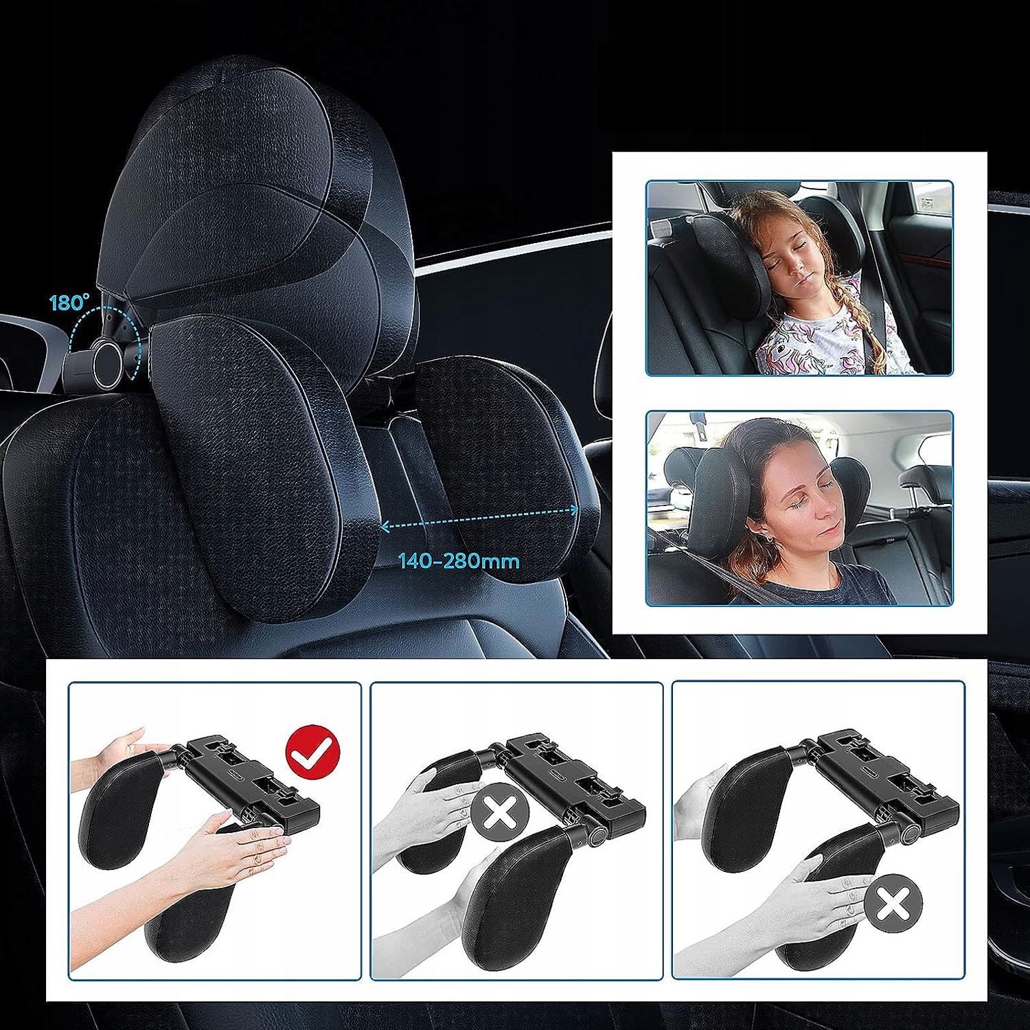🚗 Регулируемая конструкция – подголовники с обеих сторон можно регулировать на 180 градусов. Расстояние скольжения положения отверстия составляет около 7-16 см, что позволяет взрослым и детям разного роста найти удобное положение. Расстояние между перекладинами можно свободно регулировать, чтобы получить удобное положение для сна.