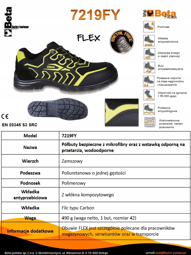 БЕЗОПАСНАЯ ОБУВЬ BETA S3 FLEX, ЗАМШЕВАЯ, С ИСТИРАТЕЛЬНЫМ ВСТАВКОМ НА ПОДНОСКЕ, БЕЗ МЕТАЛЛИЧЕСКИХ ЭЛЕМЕНТОВ, ПОЛИМЕРНЫЙ НОСОК, Стелька из КОМПОЗИТНОГО ВОЛОКНА, ПРОТИВОПУНКЦИОННАЯ, ВОДОНЕПРОНИЦАЕМАЯ, РАЗМЕР 42