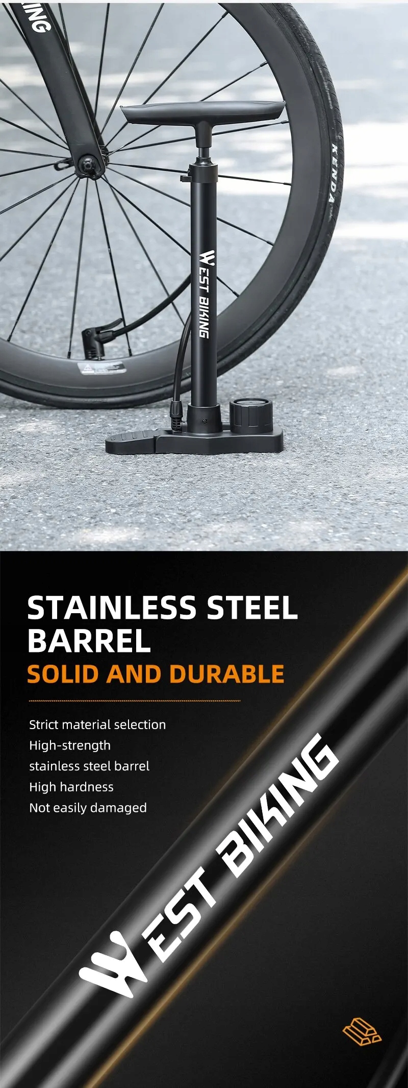 Велосипедный насос велосипедного пола на запад - это незаменимый инструмент для каждого велосипедиста. Изготовлен из прочной из нержавеющей стали, обеспечивает длительный срок службы и сопротивление погодным условиям. Благодаря максимальному давлению до 160 фунтов на квадратный дюйм, он позволяет быстро и эффективно надувать шины на оптимальный уровень.