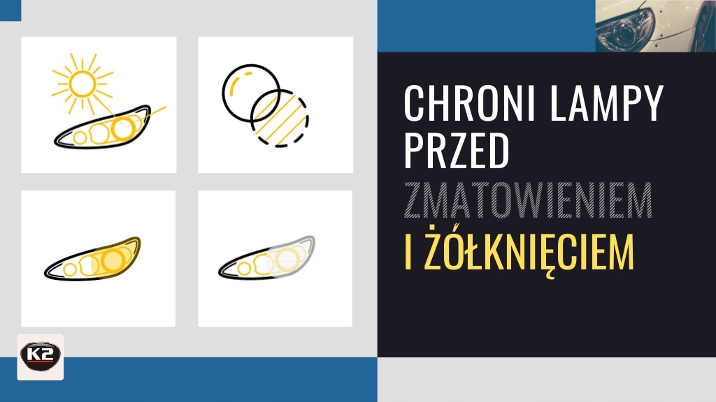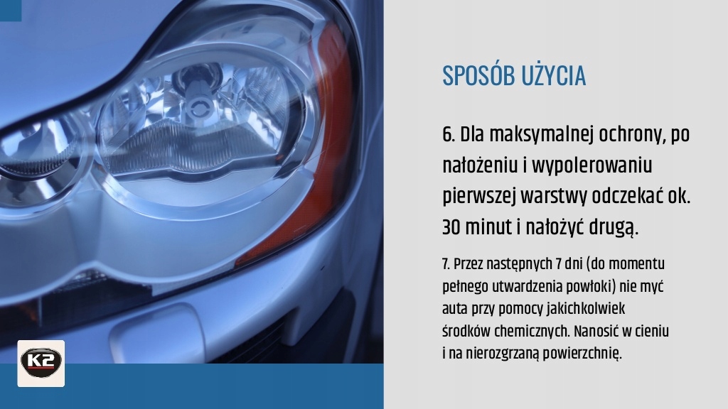 Покрытие ламп K2, защищающие лампы, создает твердую, 100% прозрачную защиту, сохраняющуюся в течение 1 года с даты навязывания. Рекомендуется обеспечить фары после ремонта и нового.