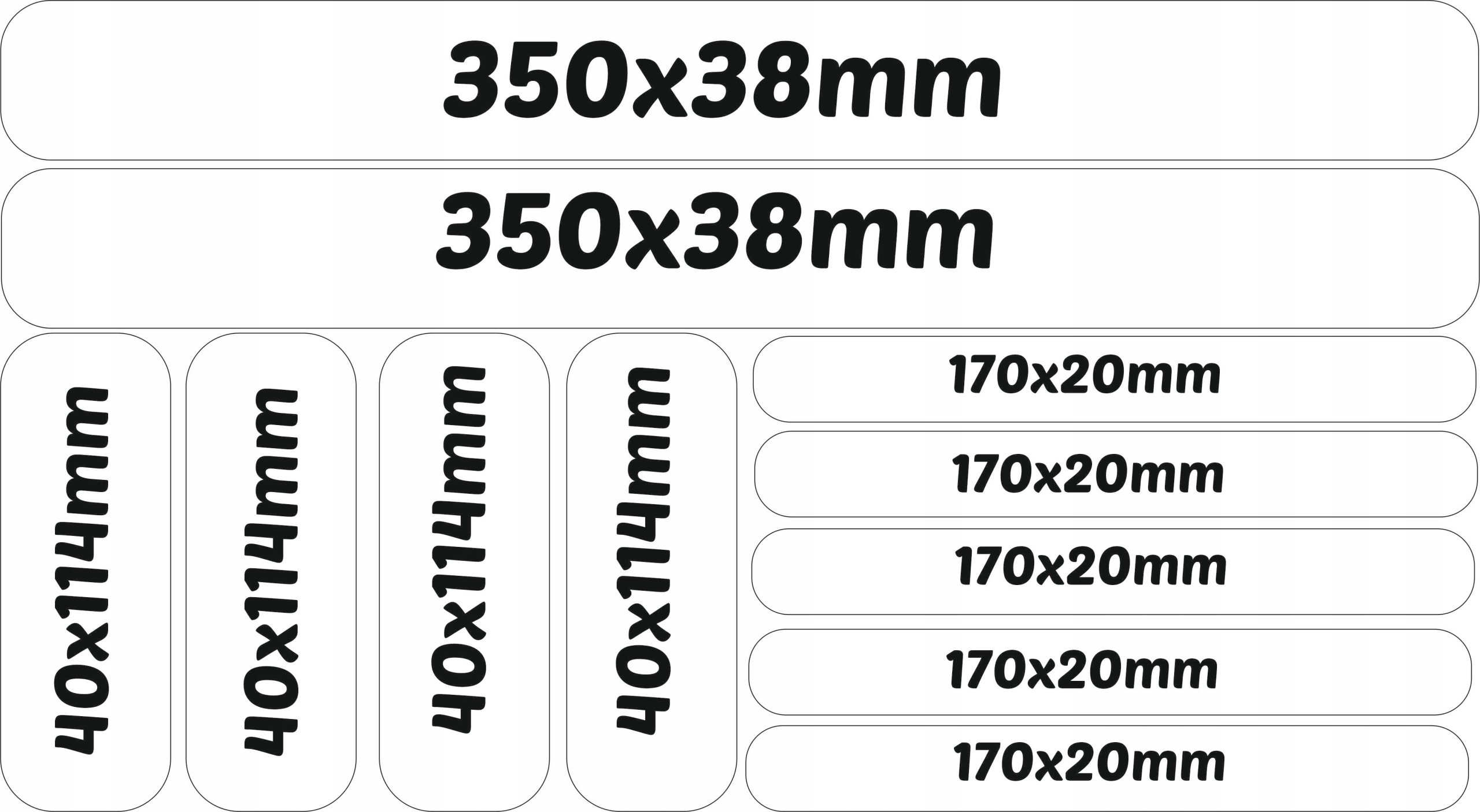 Набор состоит из 11 размеров наклеек, приведенных на фото рядом с ним.