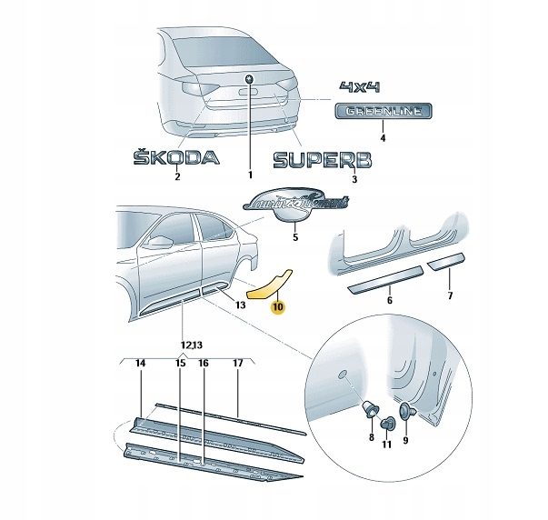 ЗАЩИТНАЯ ФОЛЬГА ЗАДНЕГО КРЫЛА ПРАВАЯ SKODA SUPERB OE: 3V0807906B