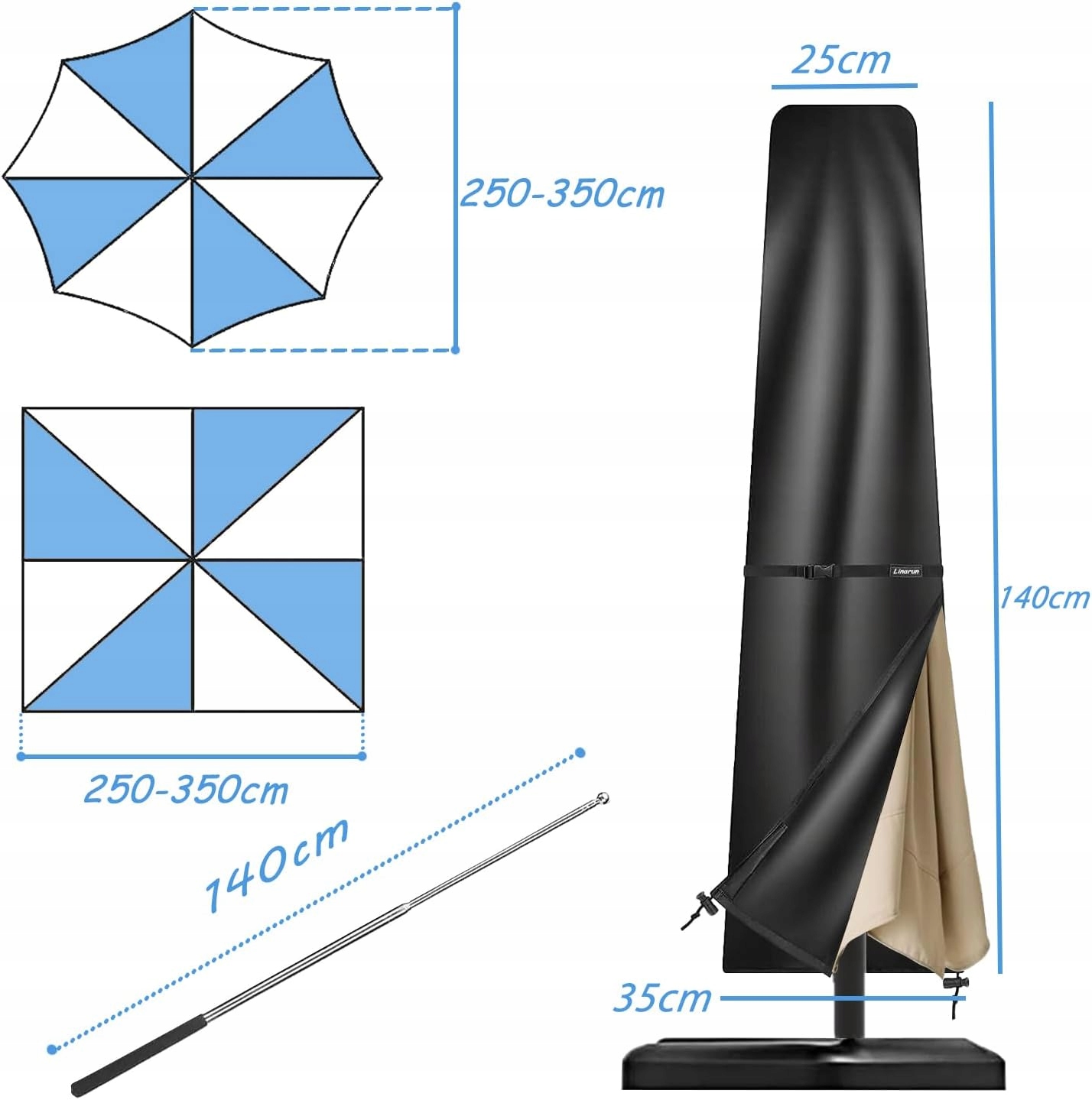Размеры линаруна Umbrella Cover: 140 см (высота) x 25 см (высокая высокая) 30 см (пот. Благодаря своему размеру, он подходит как для простых, так и для быстро растущих зонтиков, а также для квадратных и круглых зонтиков.