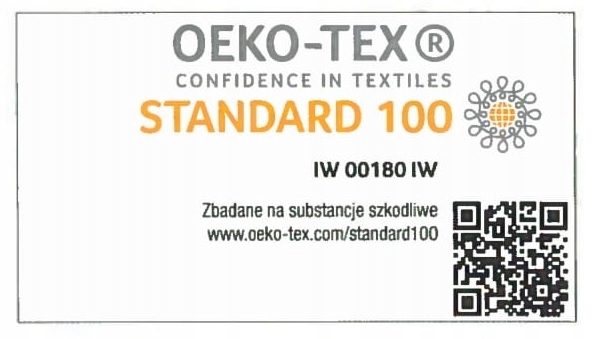 стандарт 100 от Oeko-tex ® является ведущим признаком текстильных продуктов в мире. Продукты, которые были предоставлены этим знаком, свободны от вредных веществ в концентрациях, которые оказывают негативное влияние на здоровье человека, включая пестициды, хлорфенолы, формальдегид, аллергенные красители, запрещенные красители азо и необычные тяжелые металлы.