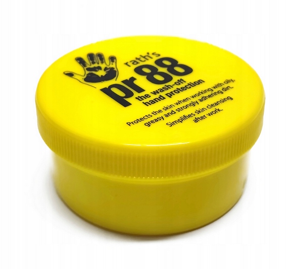 PR88, часто называют «невидимой перчаткой». Нанесенный на руки перед началом работы, он создает надежный защитный слой, препятствующий проникновению частиц грязи в кожу. Сухое, эластичное и стабильное покрытие создает эффективный защитный слой между кожей и действующими на нее агентами. Не содержит консервантов и силикона. Парфюмированный, с очень хорошей впитываемостью - протестирован дерматологами.