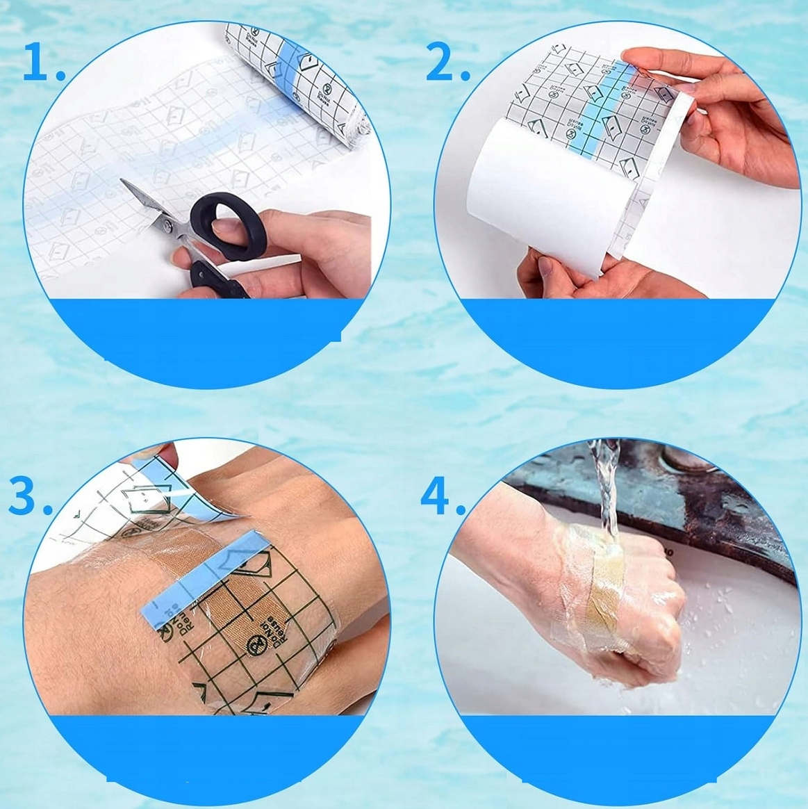 Наша самоклеящаяся повязка состоит из ПЭТ-подложки, ПУ-пленки, самоклеящегося клея и разделительной бумаги. Прозрачный, водонепроницаемый, удобный и дышащий, антиаллергенный, позволяет принимать душ или плавать как обычно, не повреждая кожу.