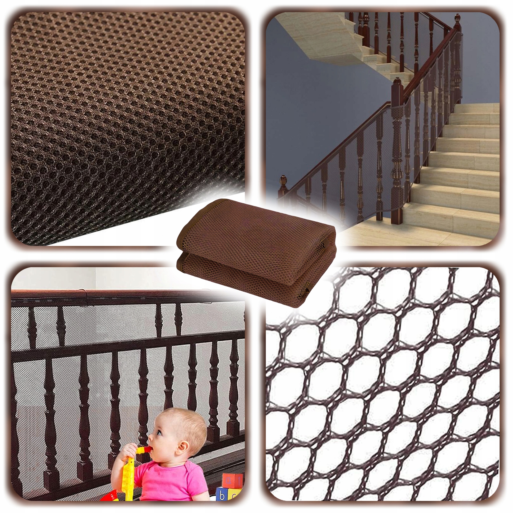 Позаботьтесь о спокойствии в доме благодаря прочной и стильной защитной сетке длиной 3 метра и высотой 79 см. Это практичная защита балконов, лестниц, террас, перил или детских кроваток – она защищает детей и животных от падения или застревания. Коричневый цвет идеально вписывается в окружающую обстановку и не нарушает дизайн интерьера.