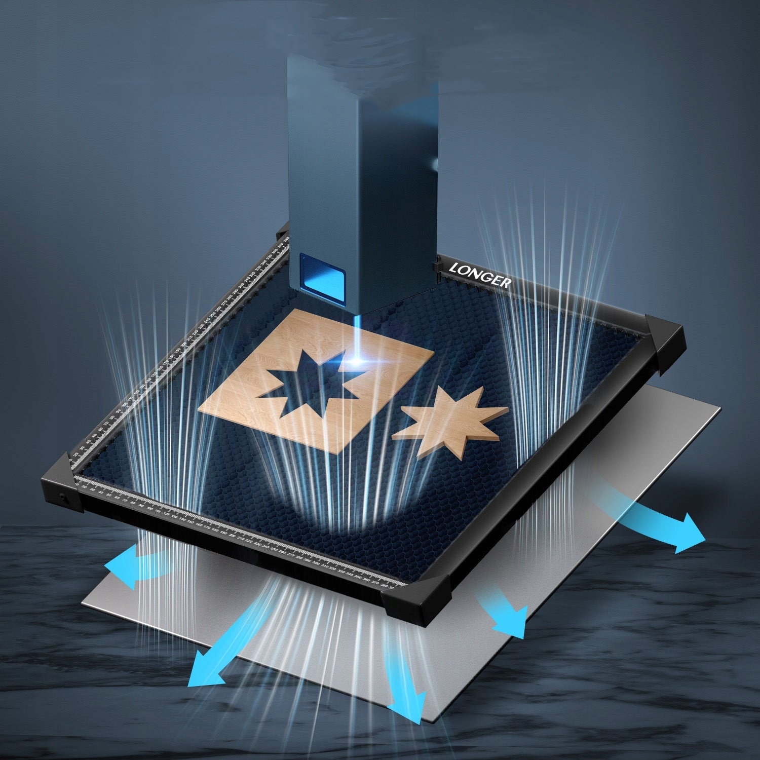 Панель соты сделана из стали, что делает его более продвинутым, долговечным и устойчивым к ржавчине. Плоская и гладкая конструкция медоносной дыры ускоряет выбросы дыма, благодаря тому, какие материалы, такие как древесина, нелегко черному от дыма, эффект гравировки лучше