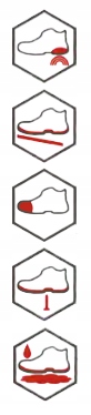- Резная подошва с красными вставками: РЕЗИНА/ПУ, сборка методом литья, устойчива к воздействию масла, бензина, жиров и других органических растворителей,