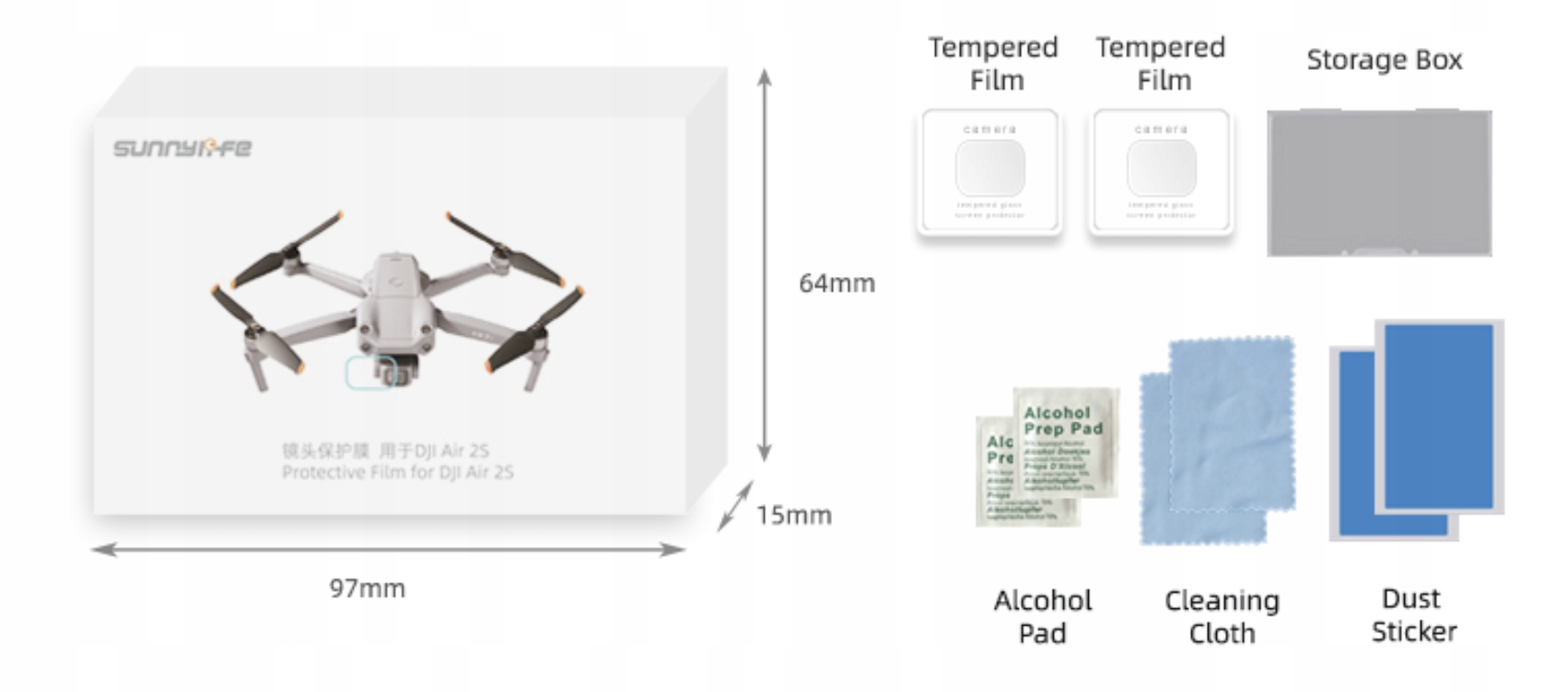 - В комплект входят 2 куска закаленного стекла - посвящено DJI Mavic AIR 2S