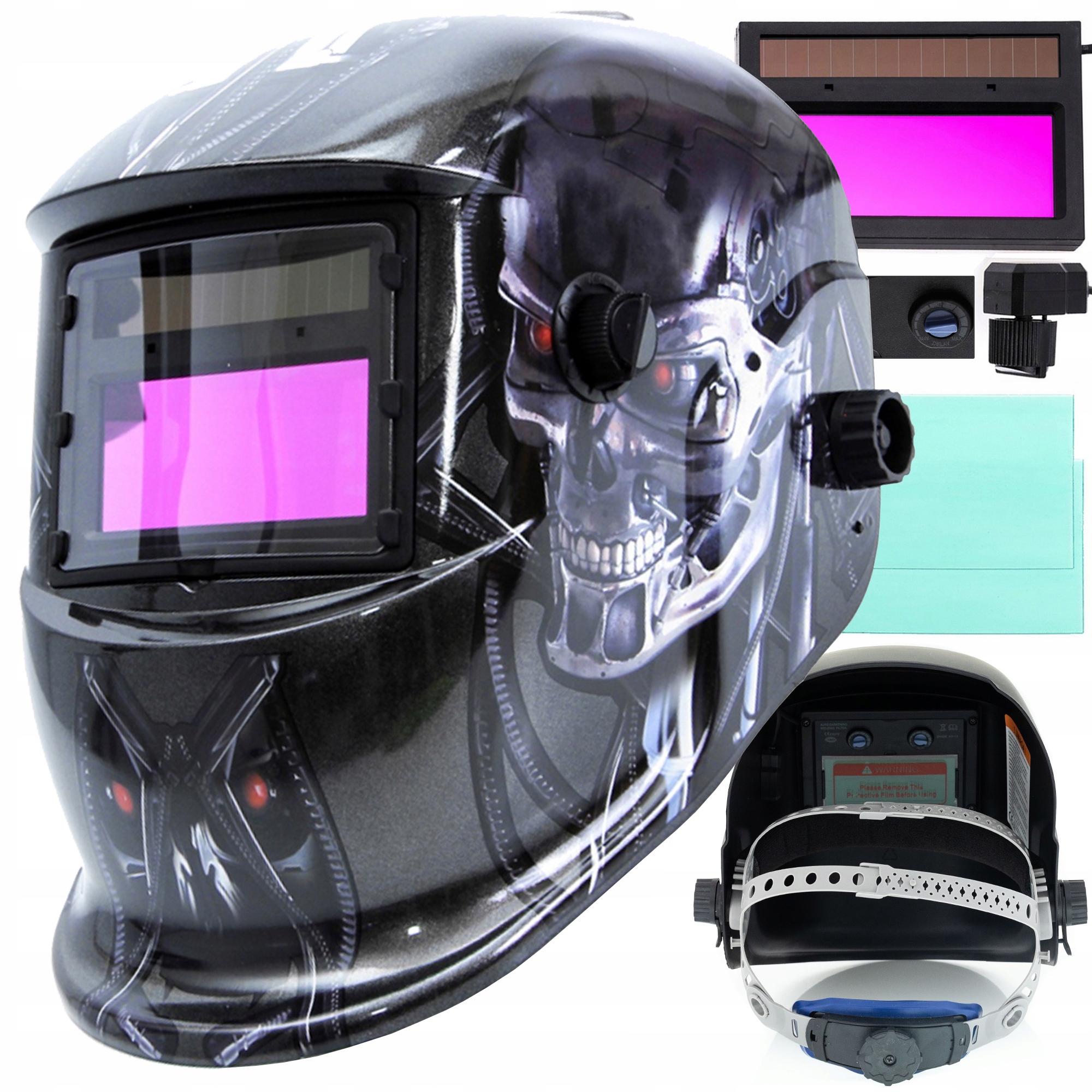 защищает пользователя от вредного излучения, возникающего во время сварки и против искры и осколков. Специальный датчик, помещенный в кассету фильтра, автоматически идентифицирует начало процесса сварки, запустив функцию самопрохождения. После завершения работы фильтр автоматически возвращается в состояние осветления. Фильтр питается внутренним батареями, которые автоматически загружаются через солнечные элементы.