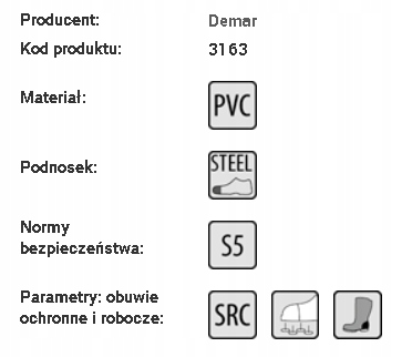 Защитные резиновые сапоги MAXX – это очень прочная специализированная обувь, приспособленная для работы в сложных и опасных условиях. Эти резиновые сапоги изготовлены из модифицированного ПВХ и обладают отличными антистатическими свойствами. Специально разработанный верх защищает лодыжку от травм, а защитный стальной носок предотвращает травмы пальцев. Противоскользящая подошва изготовлена из маслостойкого ПВХ. Обувь оснащена антиперфорационной стелькой и специальной энергопоглощающей системой в области пятки. Цельнопластиковая обувь прекрасно защищает ноги от влаги. Защитные резиновые сапоги MAXX изготовлены в соответствии со стандартом PN EN ISO 20345:2012.