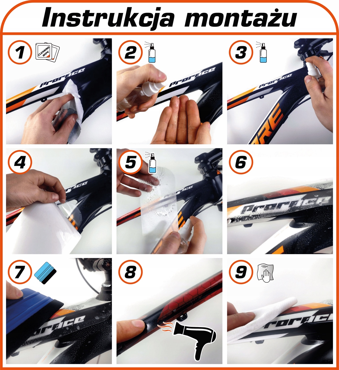 - распылите спрей на пальцы, раму велосипеда и клейкую поверхность фольги из набора.