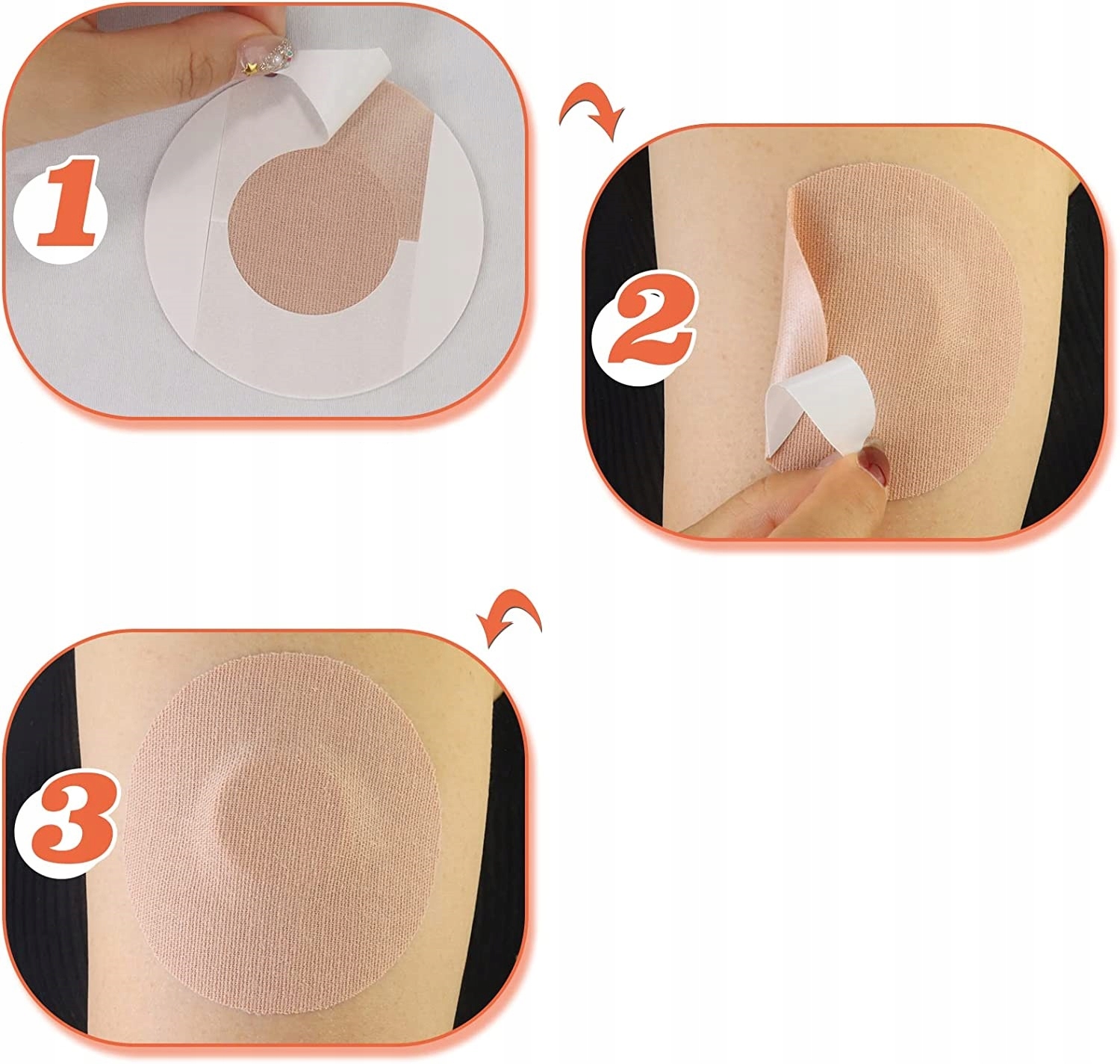 Перед применением защитного пластыря кожу следует тщательно очистить и высушить . Избегайте использования лосьонов и масел. Для лучшей адгезии рекомендуется удалить волосы с места нанесения. После установки нового датчика подождите некоторое время, чтобы убедиться, что устройство работает правильно, прежде чем наклеивать пластырь.