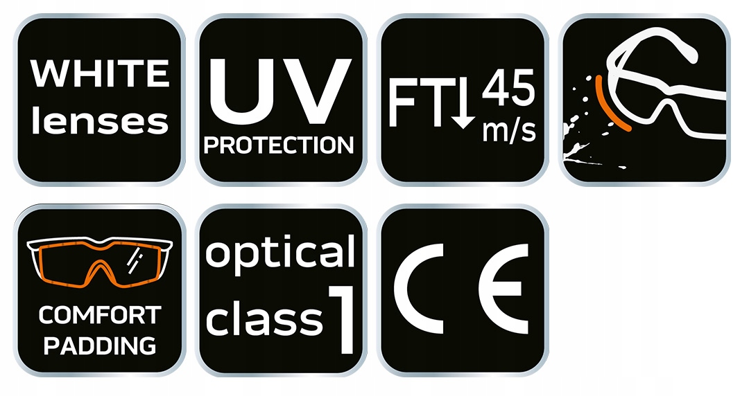 Защитные очки с поролоновой вставкой, белыми линзами 97-520 от NEO – прочные защитные очки, относящиеся к 1 оптическому классу. Они характеризуются классом стойкости FT, что гарантирует стойкость к ударам частиц с высокой скоростью (до 45 м/с) при низкой энергии удара и защиту от частиц при экстремальных температурах от -5°С до 55°С. Защитные очки NEO оснащены УФ-фильтром 2C-1,2, обеспечивающим защиту от УФ-излучения. Прозрачные линзы изготовлены из поликарбоната, а противоскользящие дужки — из резины. Вставка из пенопласта улучшает прилегание очков к лицу и делает их более удобными в ношении. Защитные очки бренда NEO соответствуют сертификату CE EN166. Они понадобятся при выполнении различных задач, где защита глаз имеет решающее значение.