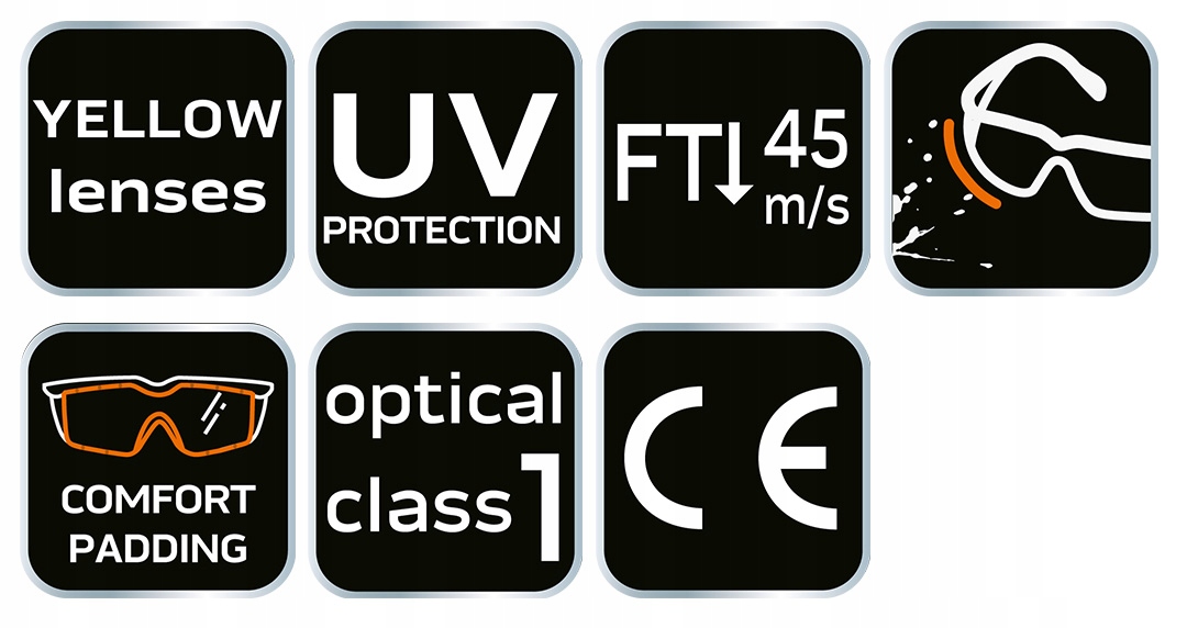Защитные очки с пенопластовой вставкой, желтые линзы 97-521 от NEO – это прочные защитные очки, относящиеся к оптическому классу 1. Они характеризуются классом стойкости FT, что гарантирует стойкость к ударам частиц с высокой скоростью (до 45 м/с) при низкой энергии удара и защиту от частиц при экстремальных температурах от -5°С до 55°С. Защитные очки NEO имеют УФ-фильтр 5-1,4, обеспечивающий защиту от УФ-излучения. Желтые линзы, обеспечивающие лучшее распознавание цветов, изготовлены из поликарбоната, а противоскользящие дужки — из резины. Вставка из пенопласта улучшает прилегание очков к лицу и делает их более удобными в ношении. Защитные очки бренда NEO соответствуют сертификату CE EN166. Они понадобятся при выполнении различных задач, где защита глаз имеет решающее значение.