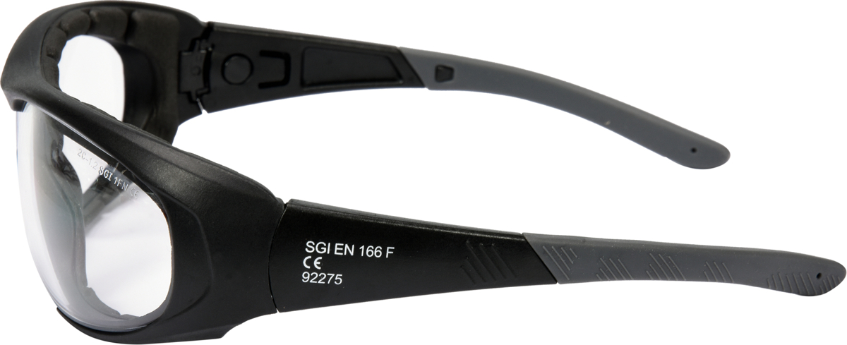 Бесцветные защитные очки с прикрепленным ремешком предназначены для защиты глаз при ручных и механических работах, например, шлифовании, сверлении и т. д. Они также подходят для активных людей, например, при езде на велосипеде или во время горных походов.