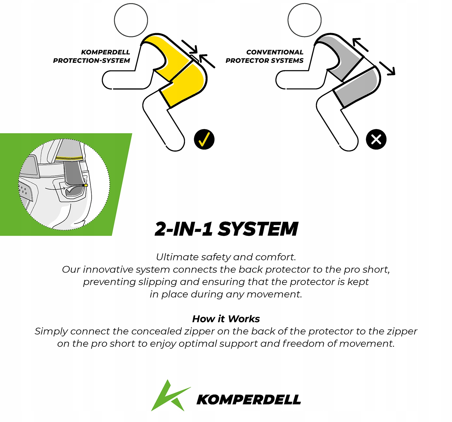 Komperdell — единственный бренд, который разрабатывает не только защитные технологии, но и соответствующую одежду. В результате получается идеально гармонирующая защитная система, которая идеально подходит и не требует компромисса с безопасностью и комфортом.