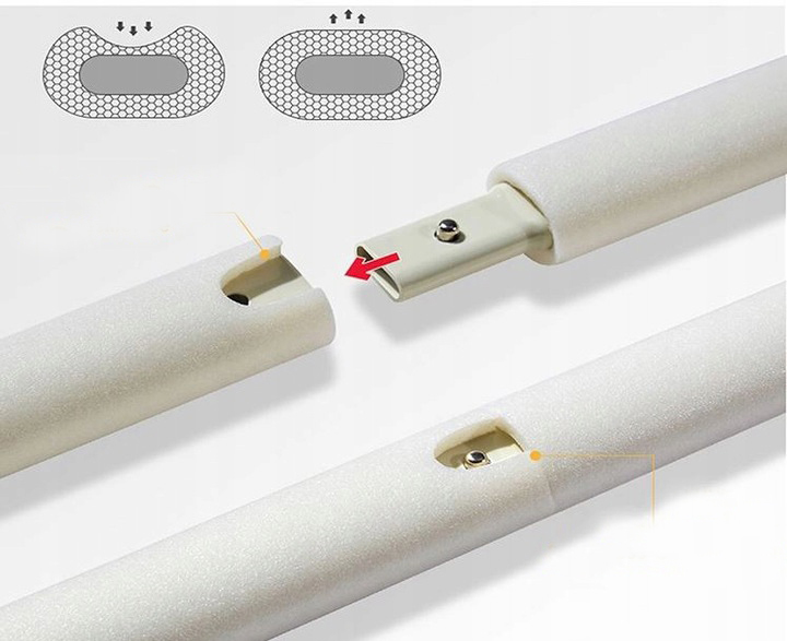 - Отдельные части каркаса соединяются путем вставки одной трубки в другую, а выдвижная кнопка гарантирует, что они не выскользнут самопроизвольно.