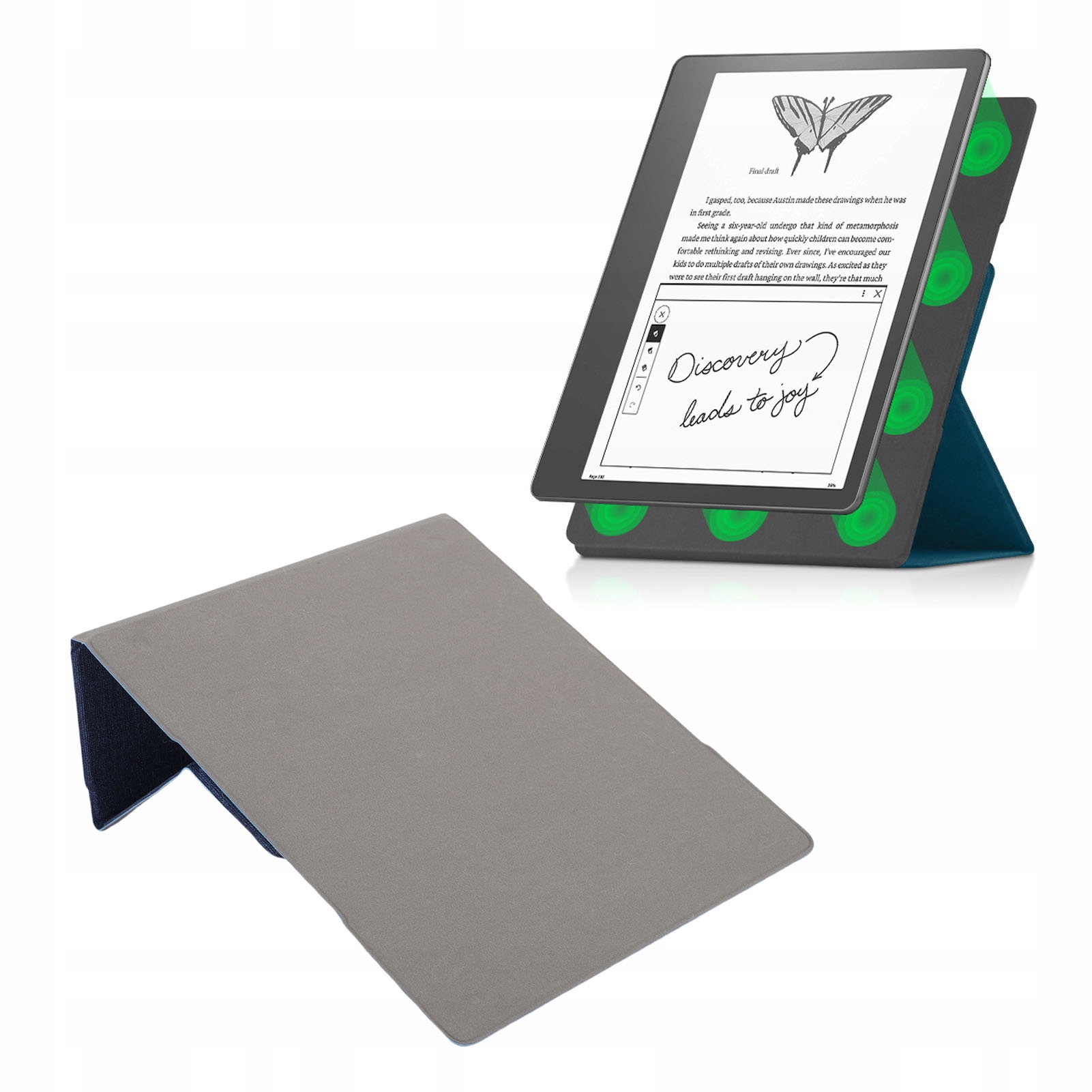 3. Универсальная функция подставки: передняя крышка превращается в регулируемую подставку под низким или высоким углом для чтения без помощи рук, подходящую для использования на столе или в путешествии с устройством для чтения электронных книг